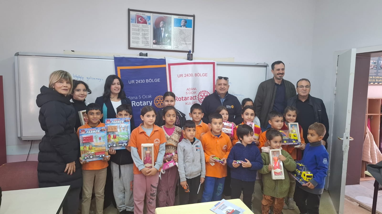 ADANA 5 OCAK ROTARACT BAŞKANI HİLAL KARDELEN İLE BİRLİKTE KUYUMCULAR İLKOKULUNDAKİ TÜM ÇOCUKLARA YÖNELİK İYİ DAVRANIŞ VE TÜRK KÜLTÜRÜ HAKKINDA SUNUM YAPILMIŞ VE ÇOCUKLARIMIZA OYUNCAK DAĞITILMIŞTIR.