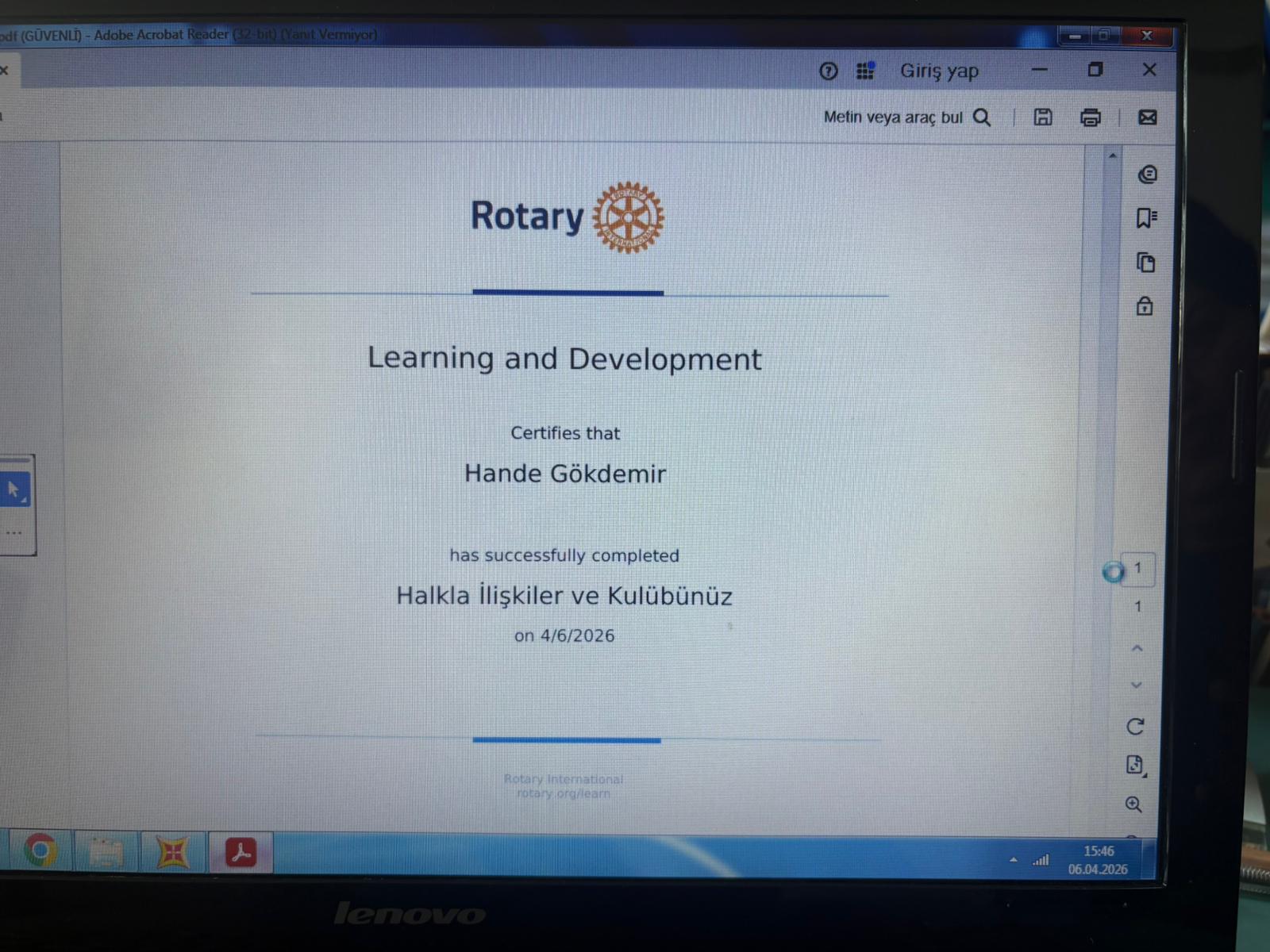 Myrotary Learning Center üzerinden; aşağıdaki kulüp üyelerimiz tarafından eğitimler tamamlanmış ve sertifikalar alınmıştır. Sertifikaları tarafımıza ulaşmayan 10.04.2026 tarihine kadar Komite Başkanına ulaştırılacaktır. Üyelerimiz: