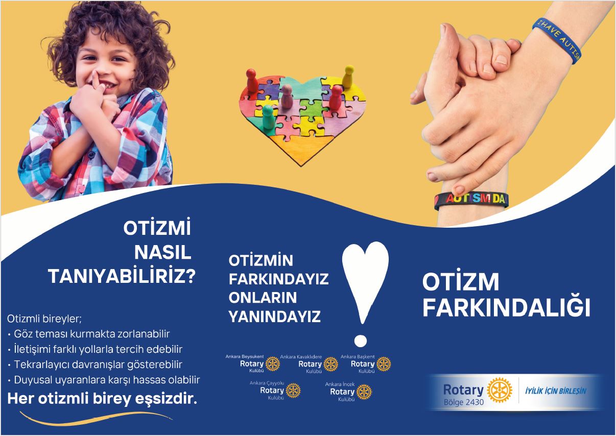 15 Şubat akşamı, otizm için bir araya gelerek; Ankara Kavaklıdere, Ankara İncek, Ankara Çayyolu, Ankara Başkent ve Beysukent Rotary Kulüpleri’nin iş birliği ve Doludizgin Band’in kıymetli katkılarıyla anlamlı bir dayanışma konseri gerçekleştirdik. Bu organizasyon yalnızca bir konser değil; aynı zamanda otizm konusunda farkındalık oluşturma sorumluluğuydu. Katılımcı misafirlerimize bilgilendirici broşürler dağıtarak toplumsal bilinç oluşturmayı hedefledik. Bölge 2430 Otizm Ana Komitesinin onayları ile hazırlanan broşür, tüm misafirlerimize dağıtıldı.