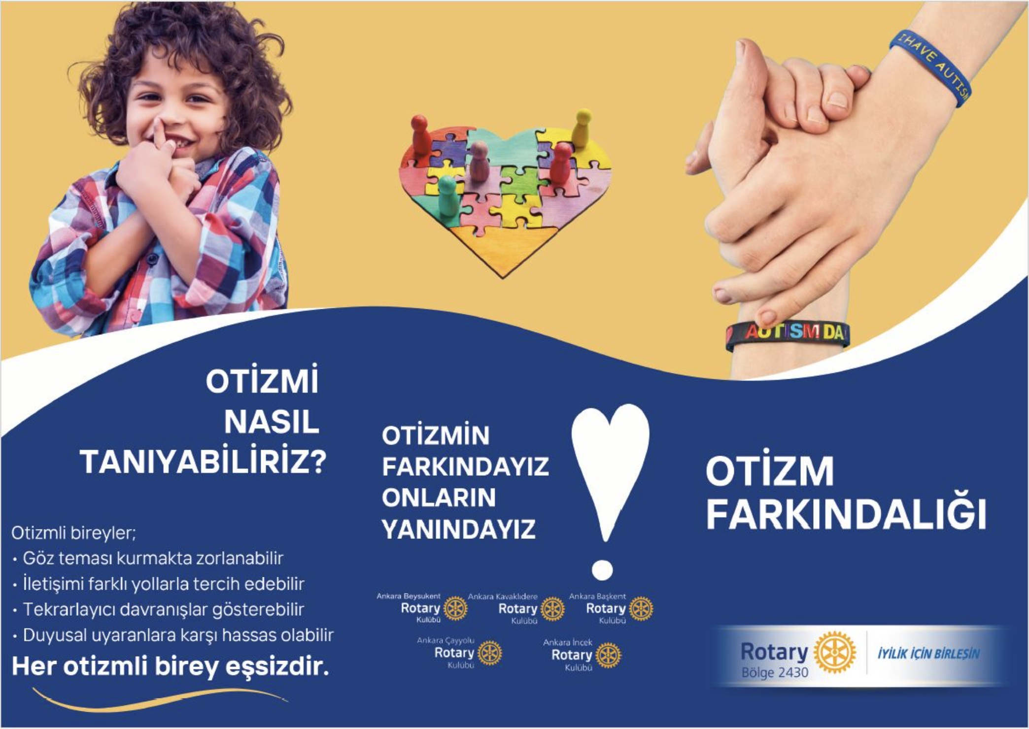 5 Şubat akşamı, otizm için bir araya gelerek; Ankara Kavaklıdere, Ankara İncek, Ankara Çayyolu, Ankara Başkent ve Beysukent Rotary Kulüpleri’nin iş birliği ve Doludizgin Band’in kıymetli katkılarıyla anlamlı bir dayanışma konseri gerçekleştirdik. Bu organizasyon yalnızca bir konser değil; aynı zamanda otizm konusunda farkındalık oluşturma sorumluluğuydu. Katılımcı misafirlerimize bilgilendirici broşürler dağıtarak toplumsal bilinç oluşturmayı hedefledik. Bölge 2430 Otizm Ana Komitesinin onayları ile hazırlanan broşür, tüm misafirlerimize dağıtıldı. Konser boyunca bizlerle olan Yeni Hayat Engelsiz Yaşam Derneği’nin yönetim kurulu ve üyeleri, otizmli çocukları ile birlikte gecede bizlerleydi. Sahnede bizlere hem otizmi anlattılar, hem de otizmli bireyler ile katkıda bulunanlara plaket verdiler. Bu, otizmli bireylerin görünürlüğü açısından çok önemli bir adımdır. Konserden elde edilen gelir, otizm alanında önemli çalışmalar yürüten Yeni Hayat Engelsiz Yaşam Derneği’ne aktarılmıştır. Derneğin Milli Eğitim Bakanlığı’ndan devraldığı bir okulun tefrişatında kullanılacak bu katkının, birçok özel çocuğumuzun hayatına dokunacağına inanıyoruz.