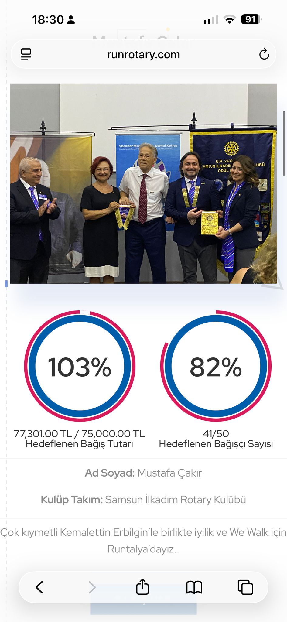 05.04.2026 TARİHİNDE GERÇEKLEŞEN RUNTALYA KOŞUSUNA KULÜBÜMÜZ ÜYESİ MUSTAFA ÇAKIR KOŞUCU OLARAK KATILMIŞ, 77.000 BAĞIŞ TOPLAMIŞTIR.