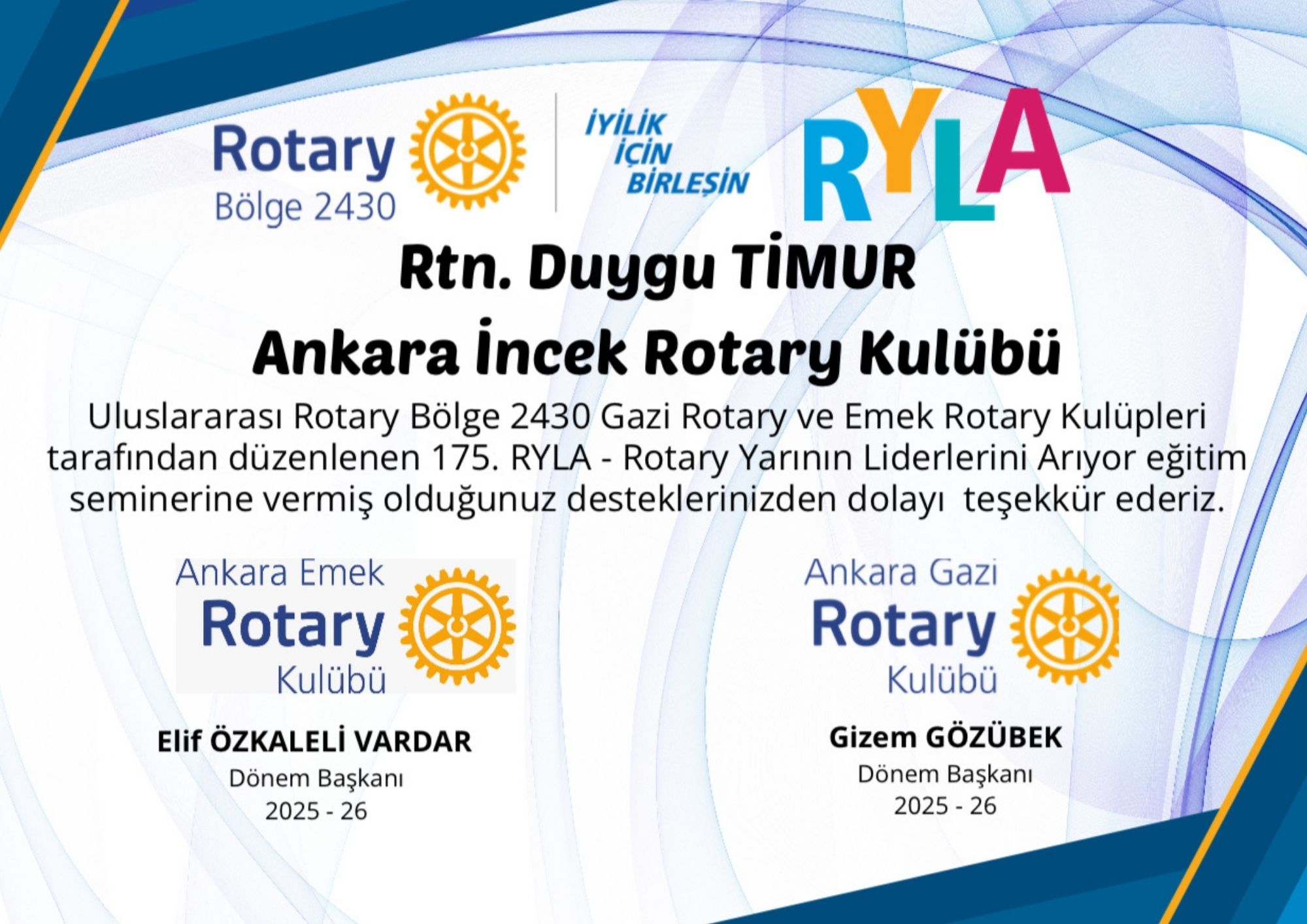 175. RYLA için bir öğrenciye sponsorluk sağlamış olup, Nisan ayı içerisinde Bakü KHAZAR RK tarafından düzenlenecek olan RYLA için 1 öğrenci sponsorluğu için gerekli görüşmeleri yapmış bulunmaktayız. Toplamda dönem içerisinde 2 öğrenci sponsorluğumuz gerçekleşmiş olacaktır.