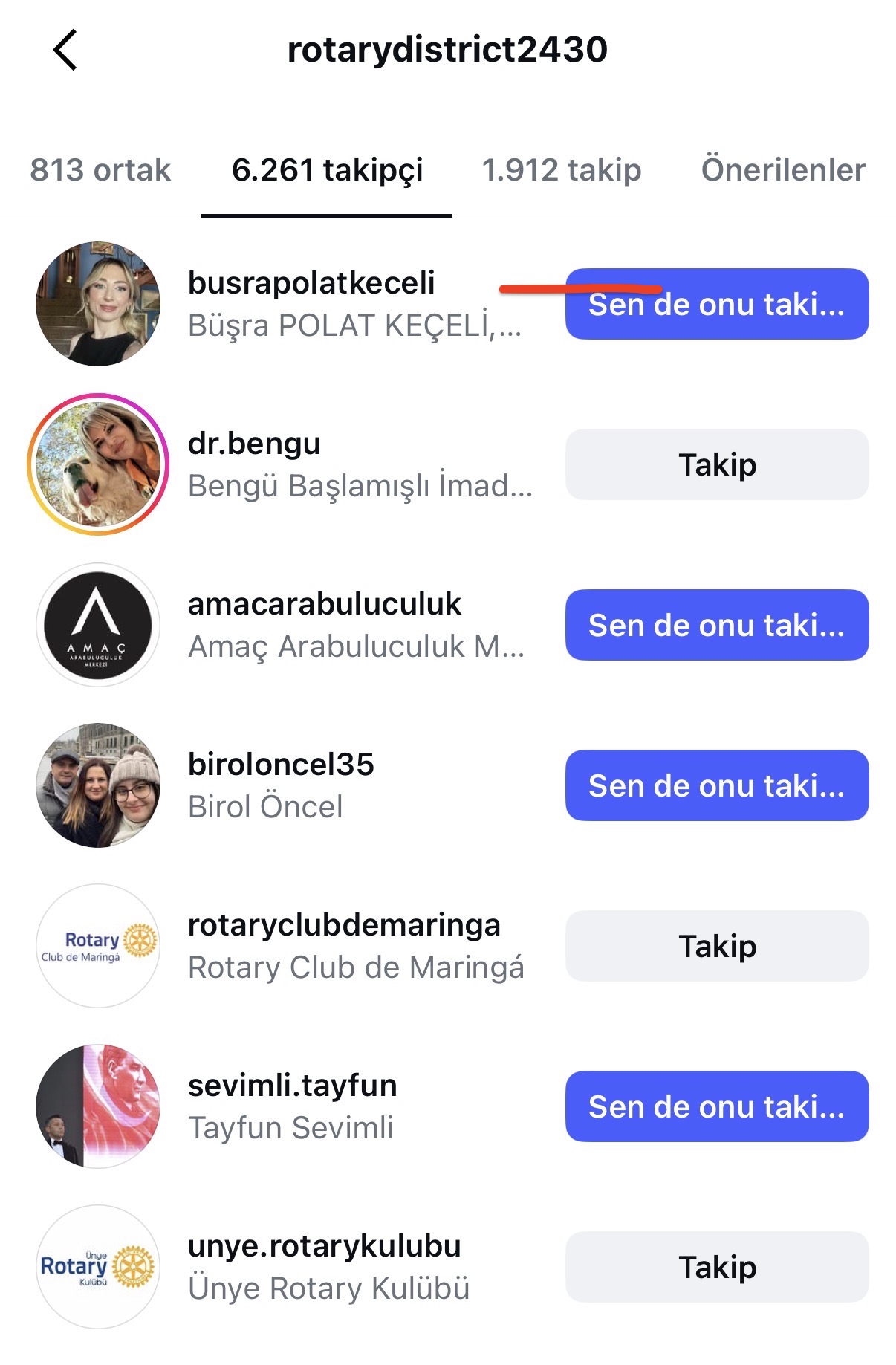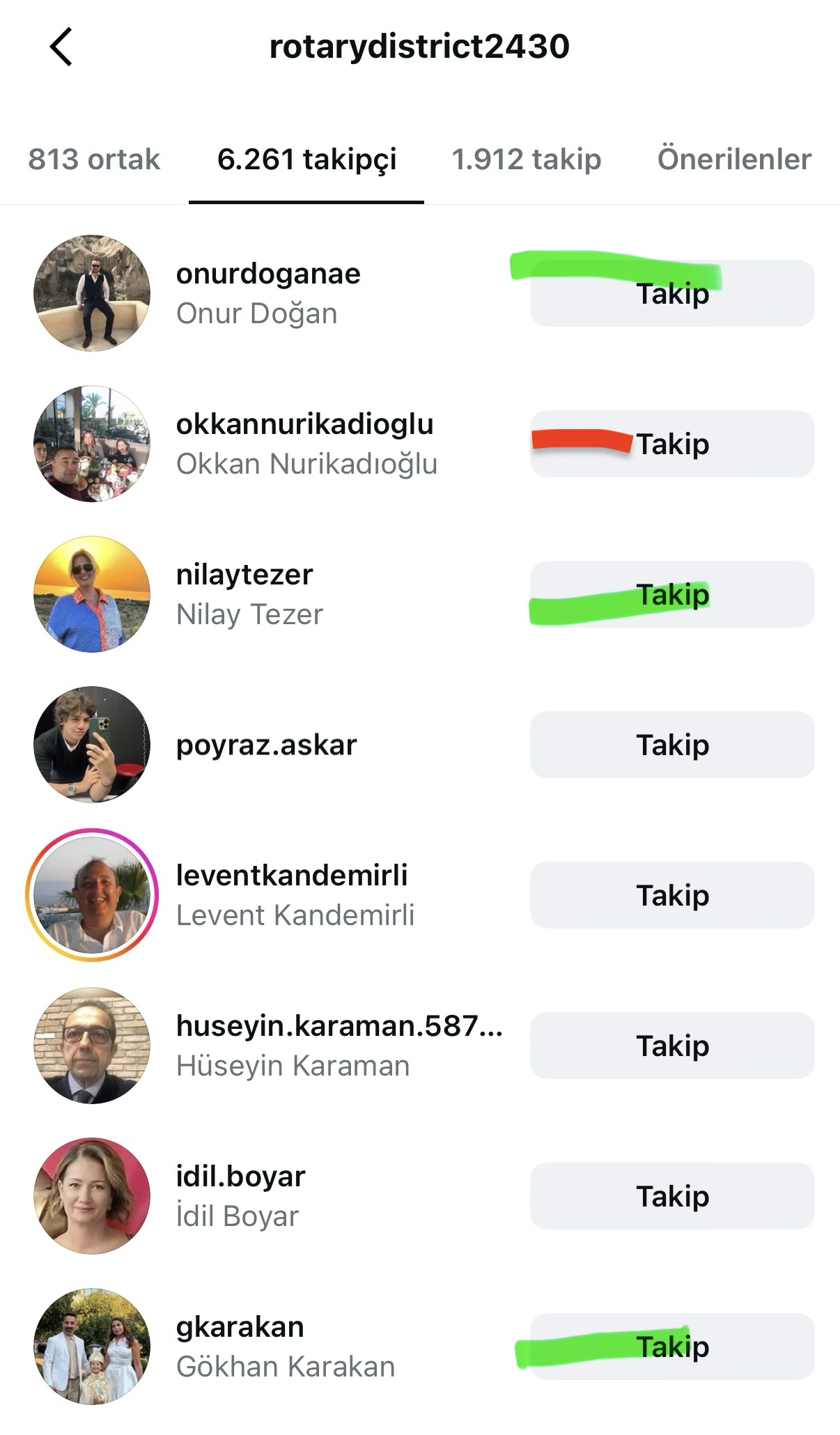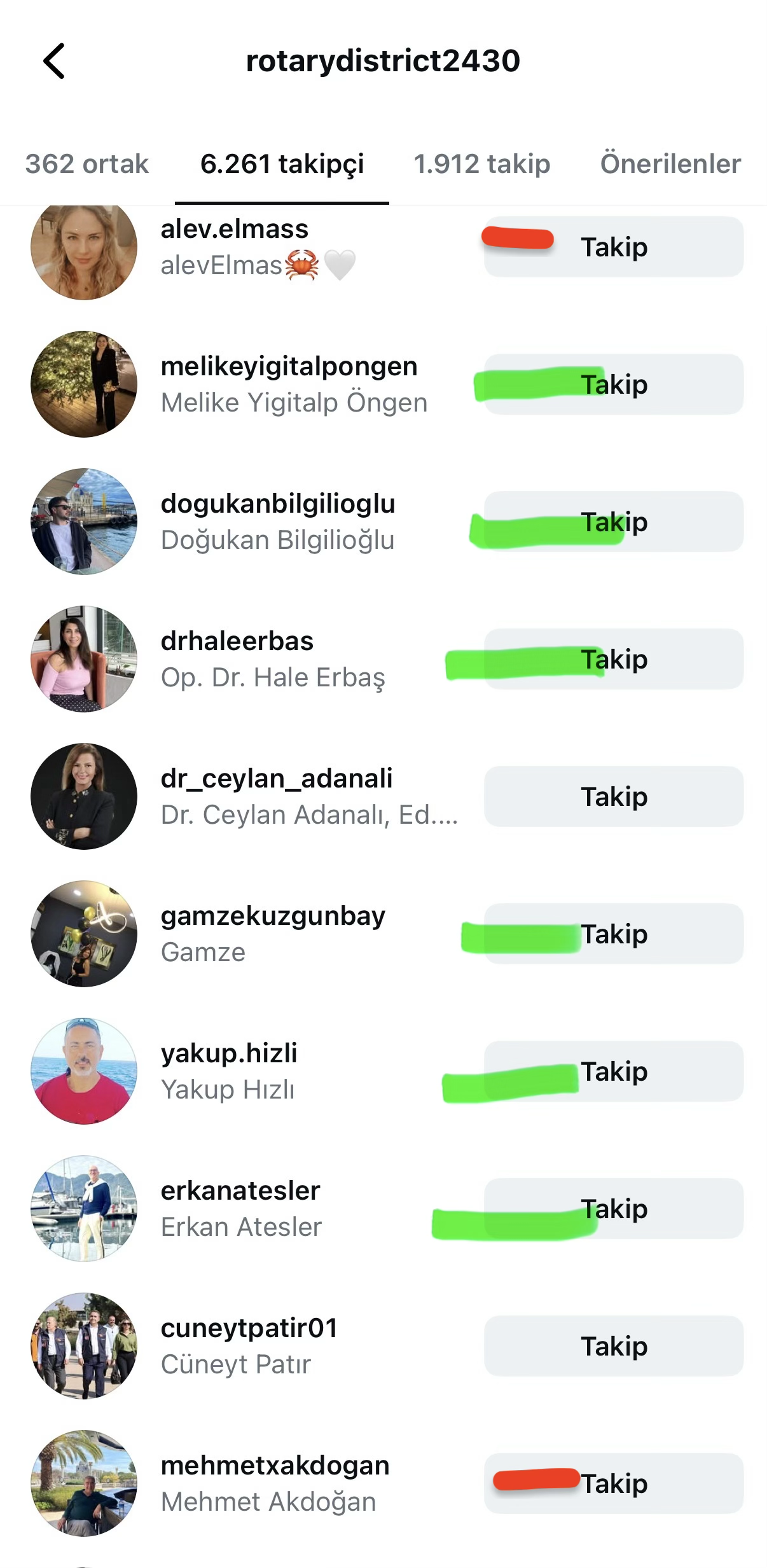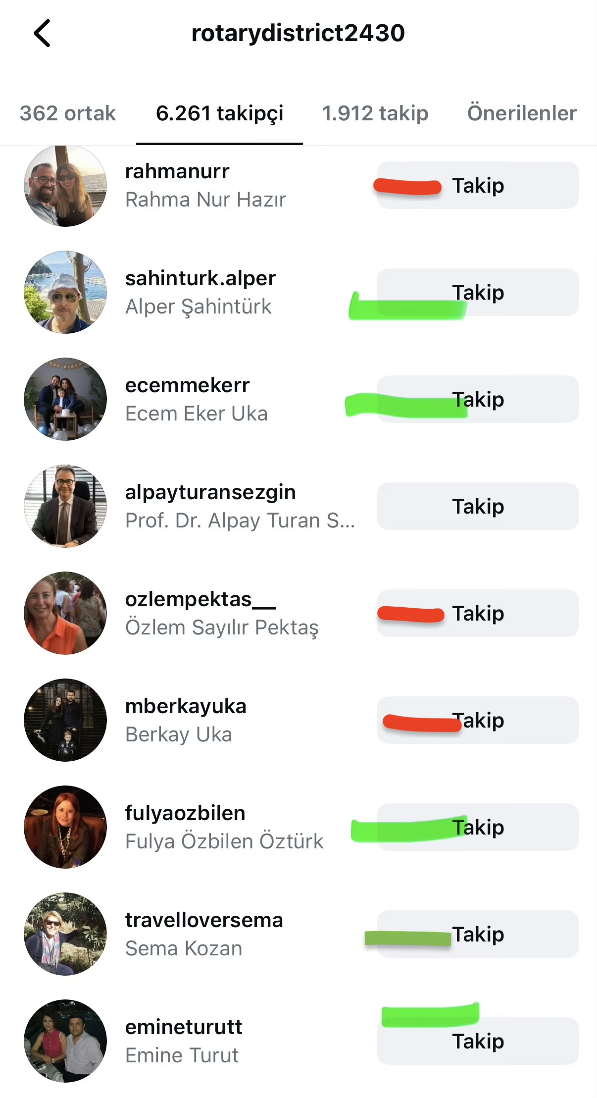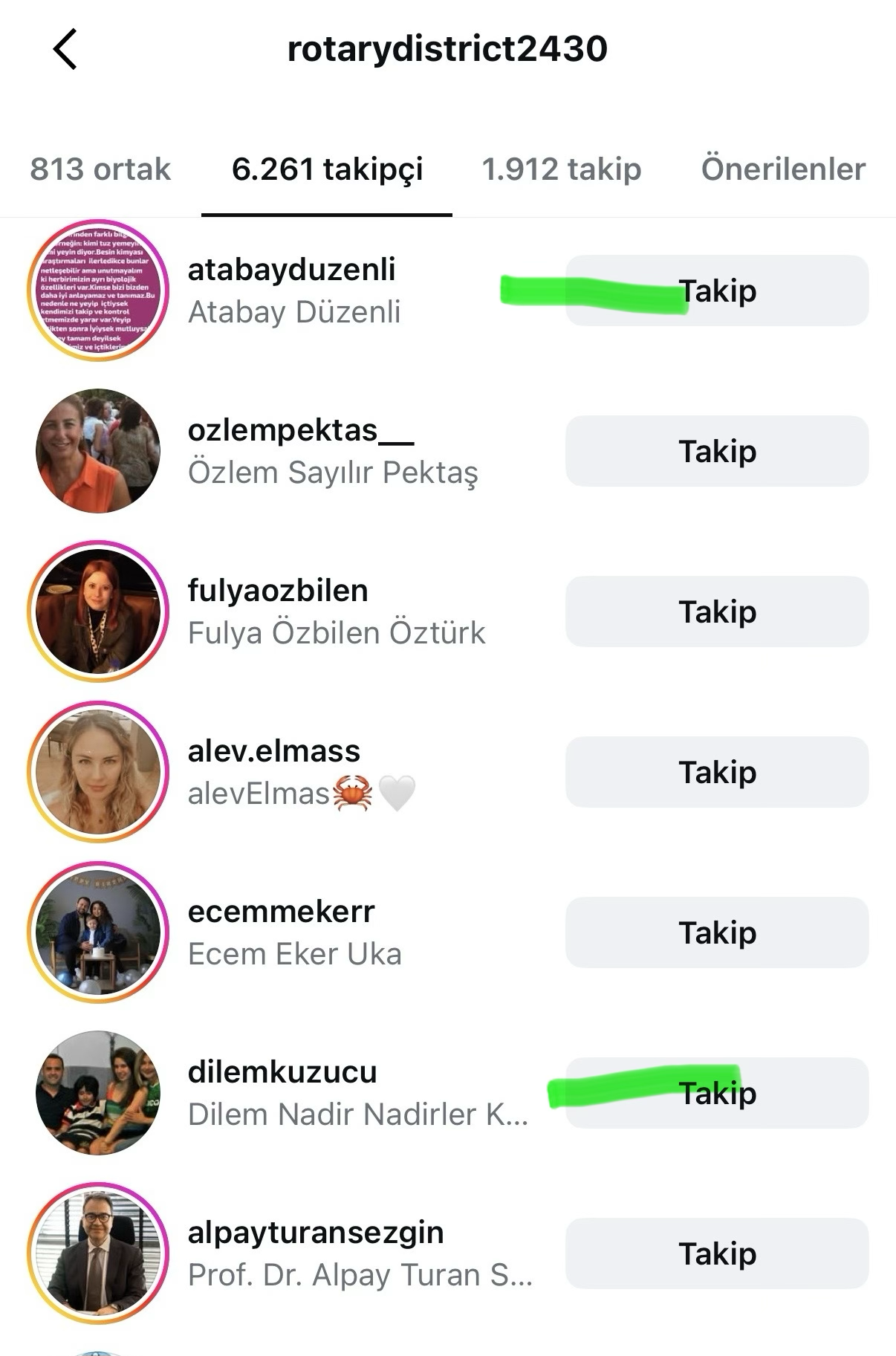 Adana Güney Rotary Kulübü Üye sayısı:59 Üye Takip Hesabı: 45 (yeşil işaretlidir) Eşler takip (kırmızı işaretlidir)