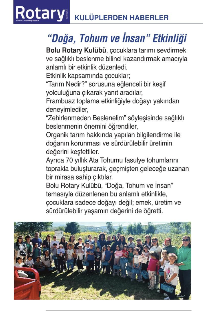 Kasım ayı Rotary Dergisinde Doğa Tohum İnsan etkinlğimiz yayınlanmıştır.