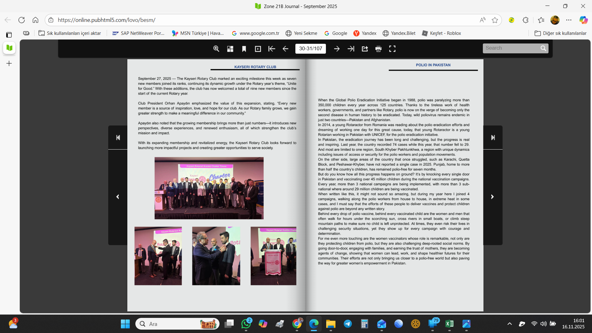 Rotary dergisinde 2 adet kulübümüze ait proje yayınlanmıştır