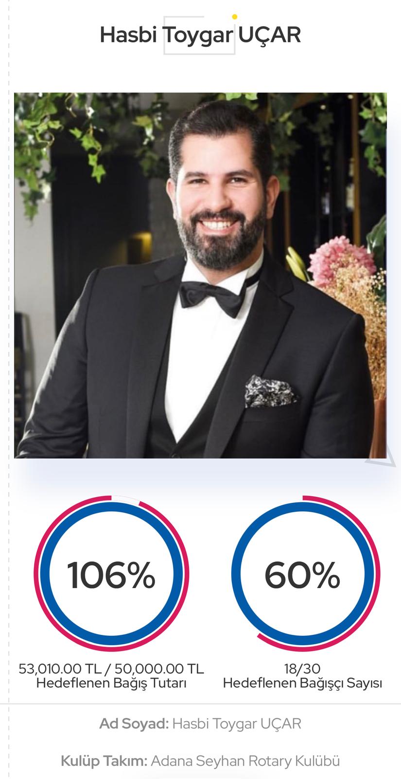 Adana Seyhan Rotary Kulübü adına koşacak olan Hasbi Toygar Uçar dostumuz için 50.000 TL’nin üzerinde bağış toplanmıştır. Destek veren herkese teşekkür ederiz.