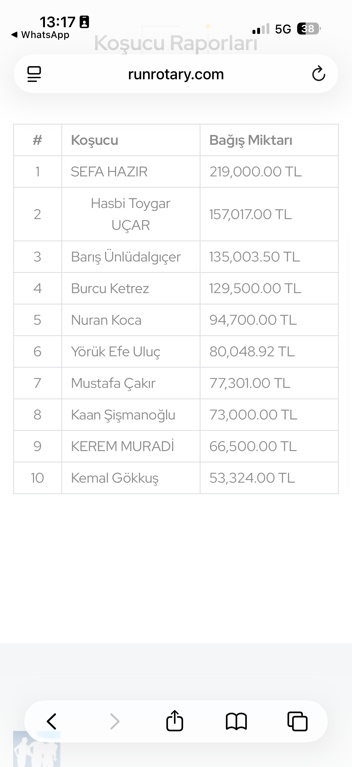 Runtalya koşusunda bireysel bağış toplanması kategorisnde 53.324tl bağış toplandı ( Kulüp başlanı olarak kulübüme liderlik ettim )