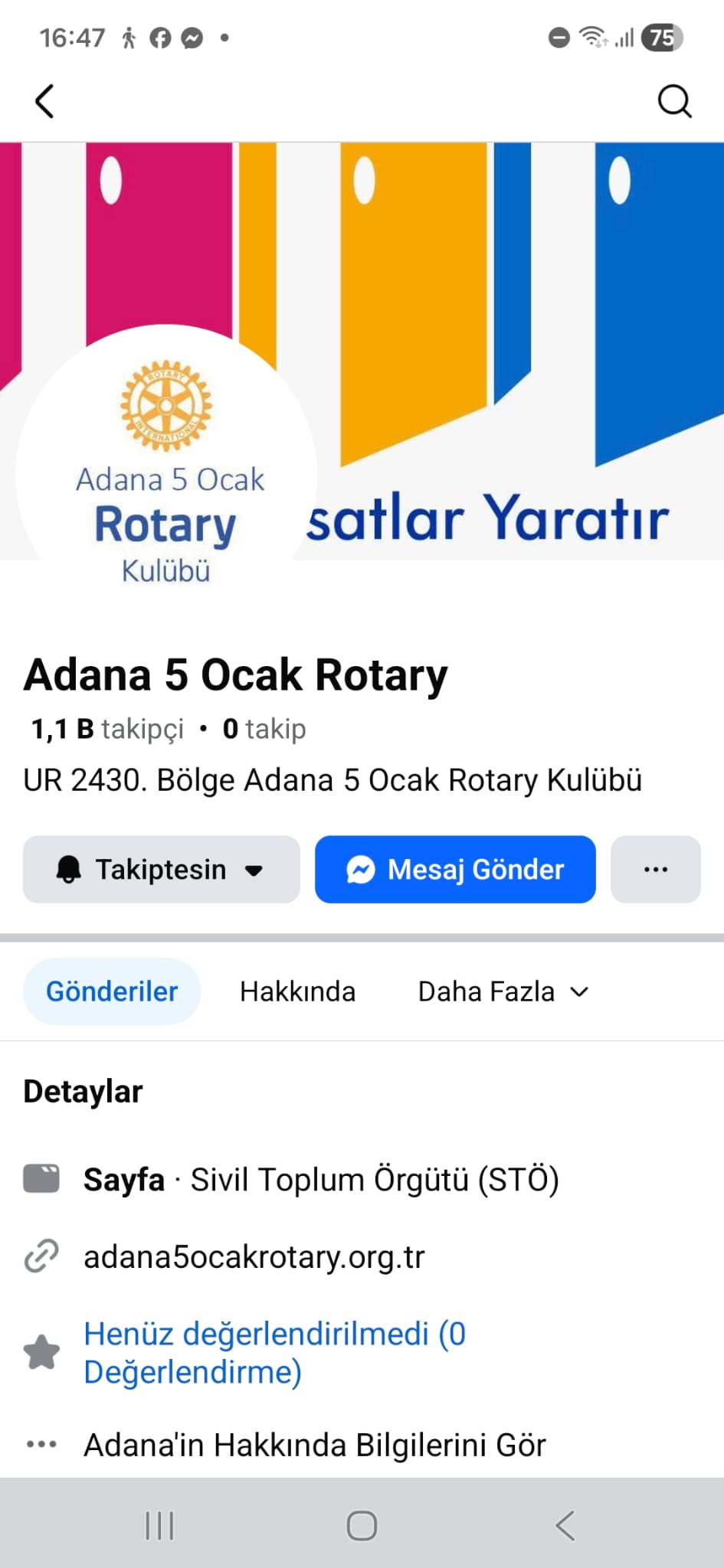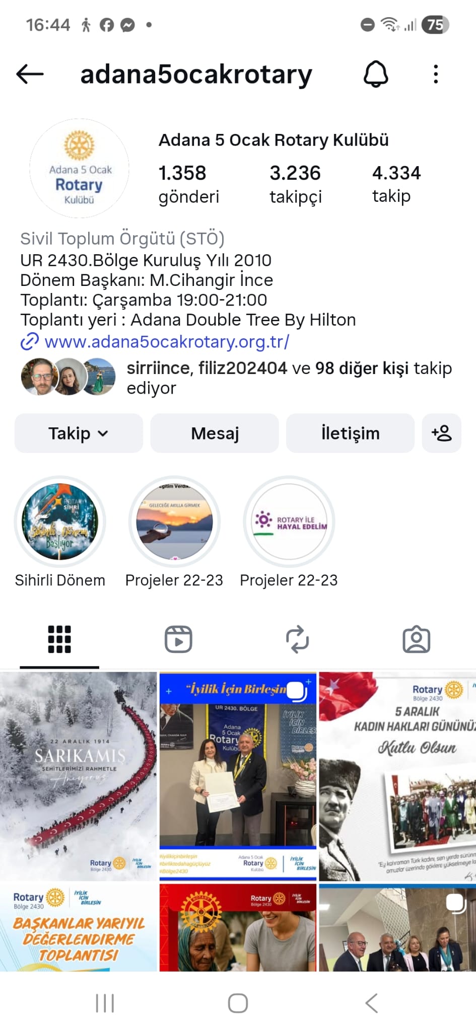 ADANA 5 OCAK ROTARY KULÜBÜ OLARAK SOSYAL MEDYA FACEBOOK VE İNSTEGRAM DA 1000 ÜZERİNDE TAKİPÇİMİZ BULUNMAKTADIR.