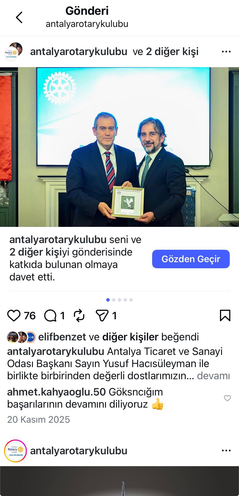 Antalya Rotary Kulübü olarak dönem başında ziyaret ettiğimiz ATSO başkanı ile yaptığımız görüşmelerde, önerileri doğrultusunda görme engelleler ile ilgili bir proje gerçekleştirdik. Beyaz Baston Derneğine yaptığımız iyileştirme çalışmaları sonrası ihtiyacın dönem içerisinde bitirilmesinin bütçe açsından zor olması nedeniyle gelecek dönem projeleri içerisinde değerlendirilmesine Yönetim Kurulu olarak karar verildi. Yapılan çalışmalar sonrası ATSO başkanını olağan kulüp toplantımıza davet ederek sosyal medya hesaplarımızda etiketlenerek gerek kulüp üyelerimiz gerekse de Kulüp hesaplarımızdan paylaşılarak görünür kılındı.