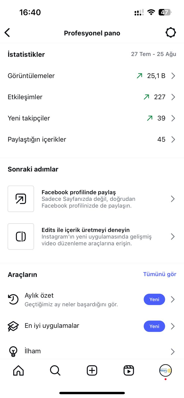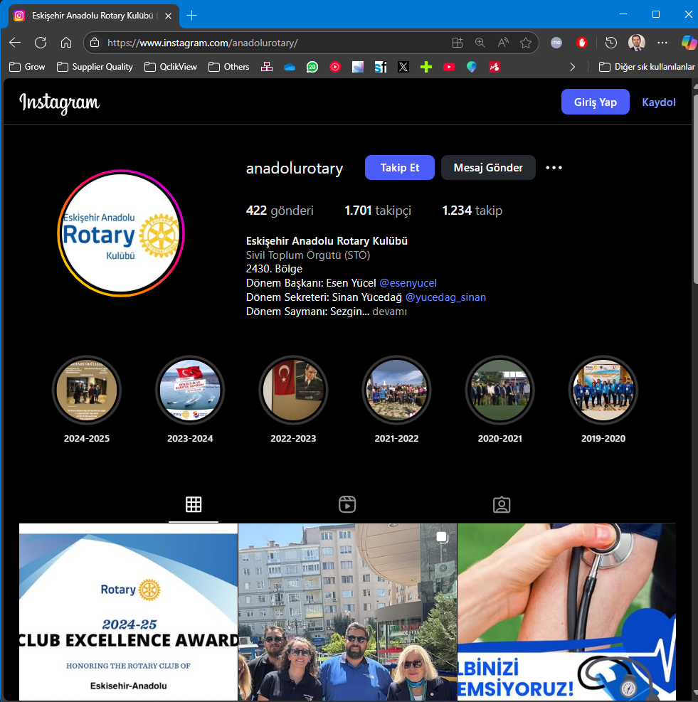 @anadolurotary instagram hesabımız 1701 takipçiye ulaşmıştır. Etkileşimi de arttırdığımız bu dönemdeki verileri ekte bulabilirsiniz.