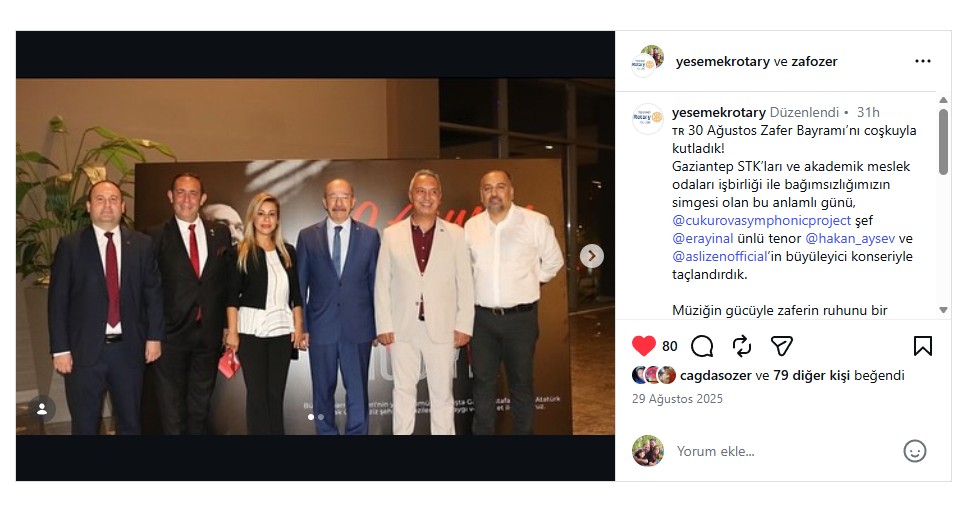 Gaziantep'teki bazı STK’lar ve Gaziantep Mimarlar , İnşaat mühendileri , makine mühendisleri , ezcacılar vb. akademik meslek odaları işbirliğimiz ile bağımsızlığımızın simgesi olan bu anlamlı günü, @cukurovasymphonicproject şef @erayinal ünlü tenor @hakan_aysev ve @aslizenofficial’in büyüleyici konseriyle taçlandırdık.
