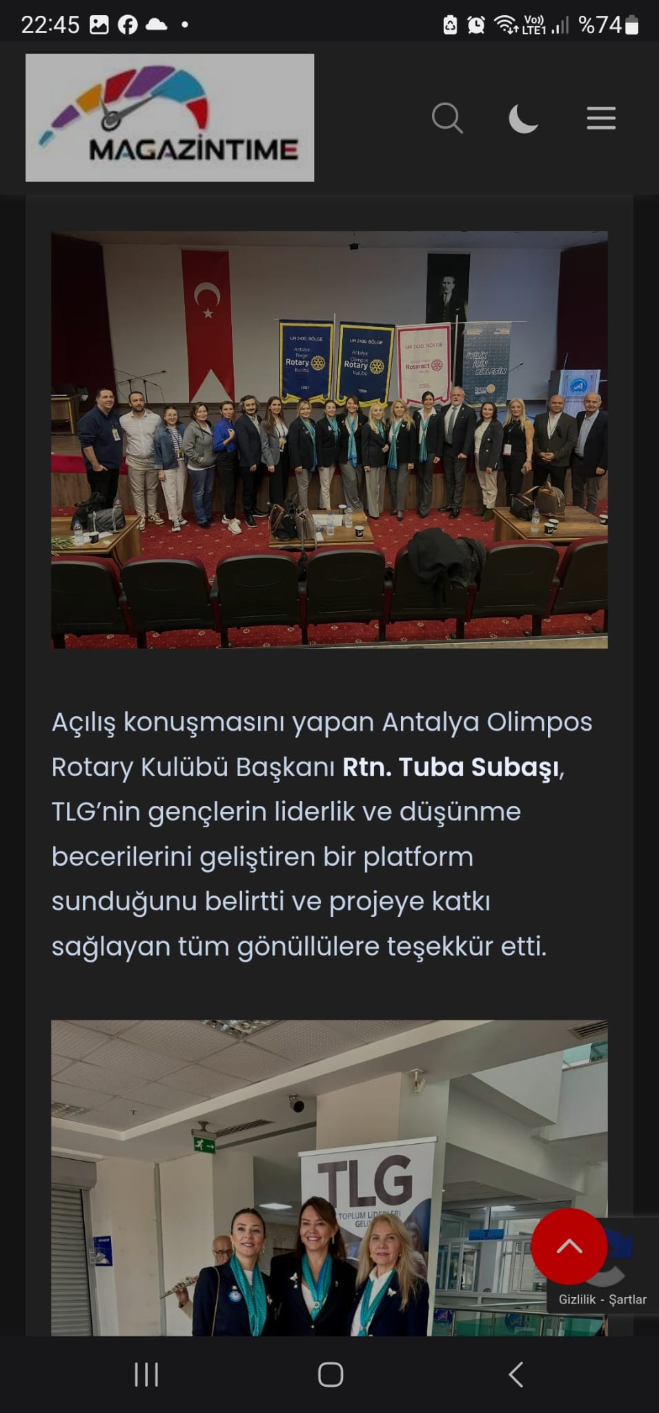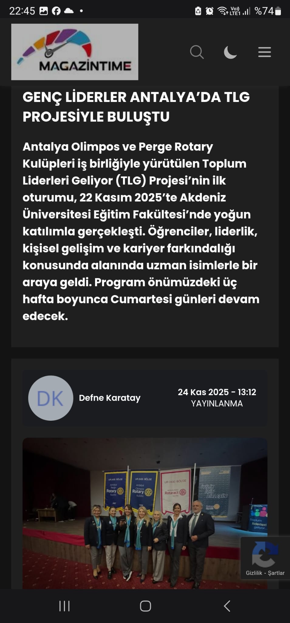 Antalya Perge Rotary ve Antalya Olimpos Rotary kulüplerinin ortaklaşa yürüttüğü Akdeniz Üniversitesi Eğitim Fakültesi öğrencileri için 22 Kasım 13 Aralık tarihleri arasında gerçekleştirdiğimiz projemiz MagazinTime da yayınlandı.