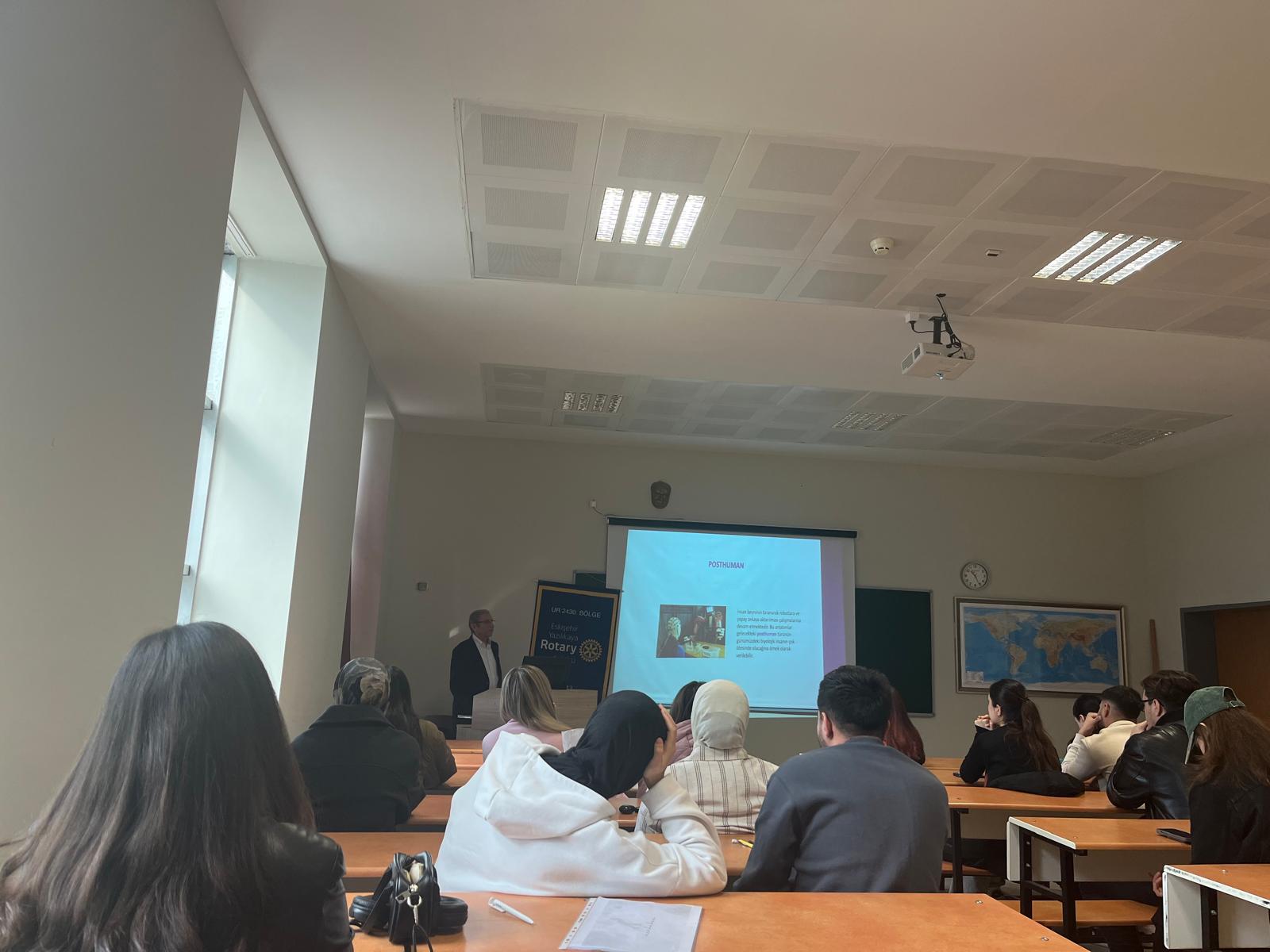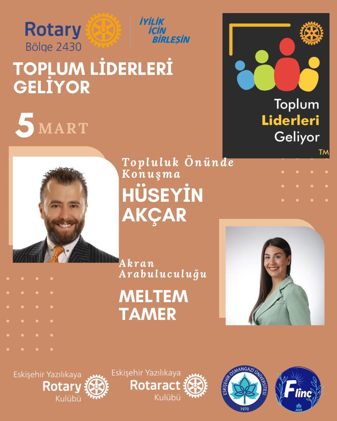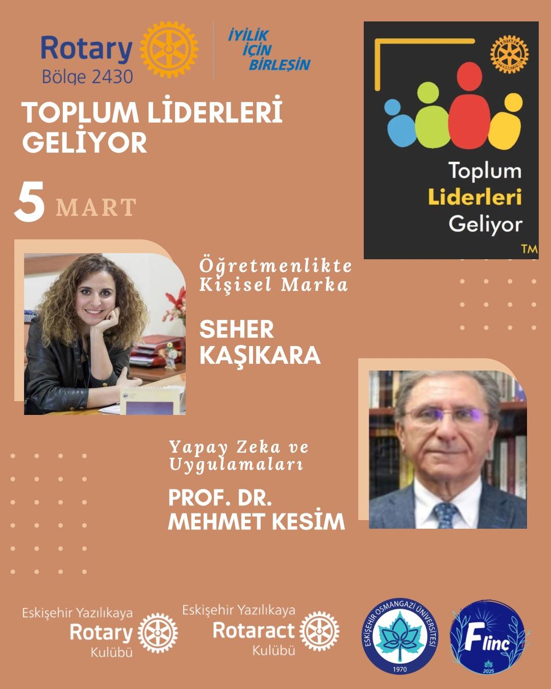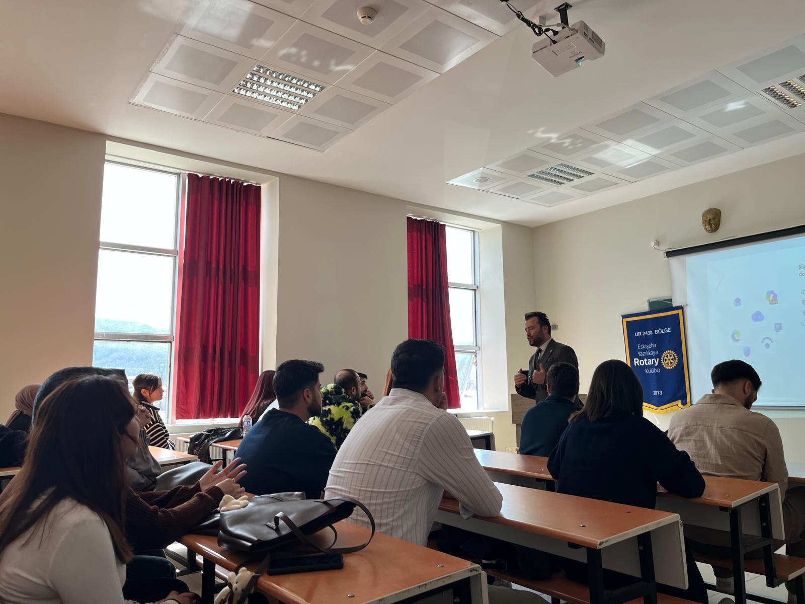 Kulübümüz, Eskişehir Yazılıkaya Rotaract Kulübü iş birliğiyle 26 Şubat -12 Mart tarihlerinde Eskişehir Osmangazi Üniversitesi Eğitim Fakültesi öğrencileriyle birlikte Toplum Liderleri Geliyor Projesini gerçekleştirmiştir. Proje kapsamında, alanında uzman profesyoneller ve yazarlar öğrencilerle buluşturularak; iletişim, liderlik, etik değerler ve toplumsal sorumluluk konularında farkındalık kazandırılması hedeflenmiştir. Programda, katılımcıların hem bireysel gelişimlerini desteklemeleri hem de topluma katkı sunabilecek bilinç ve donanıma ulaşmaları amaçlanmıştır. Proje resimleri, uzmanlar ve konularına ilişkin görseller ve etkinlik fotoğrafları bilginize sunulmuştur.