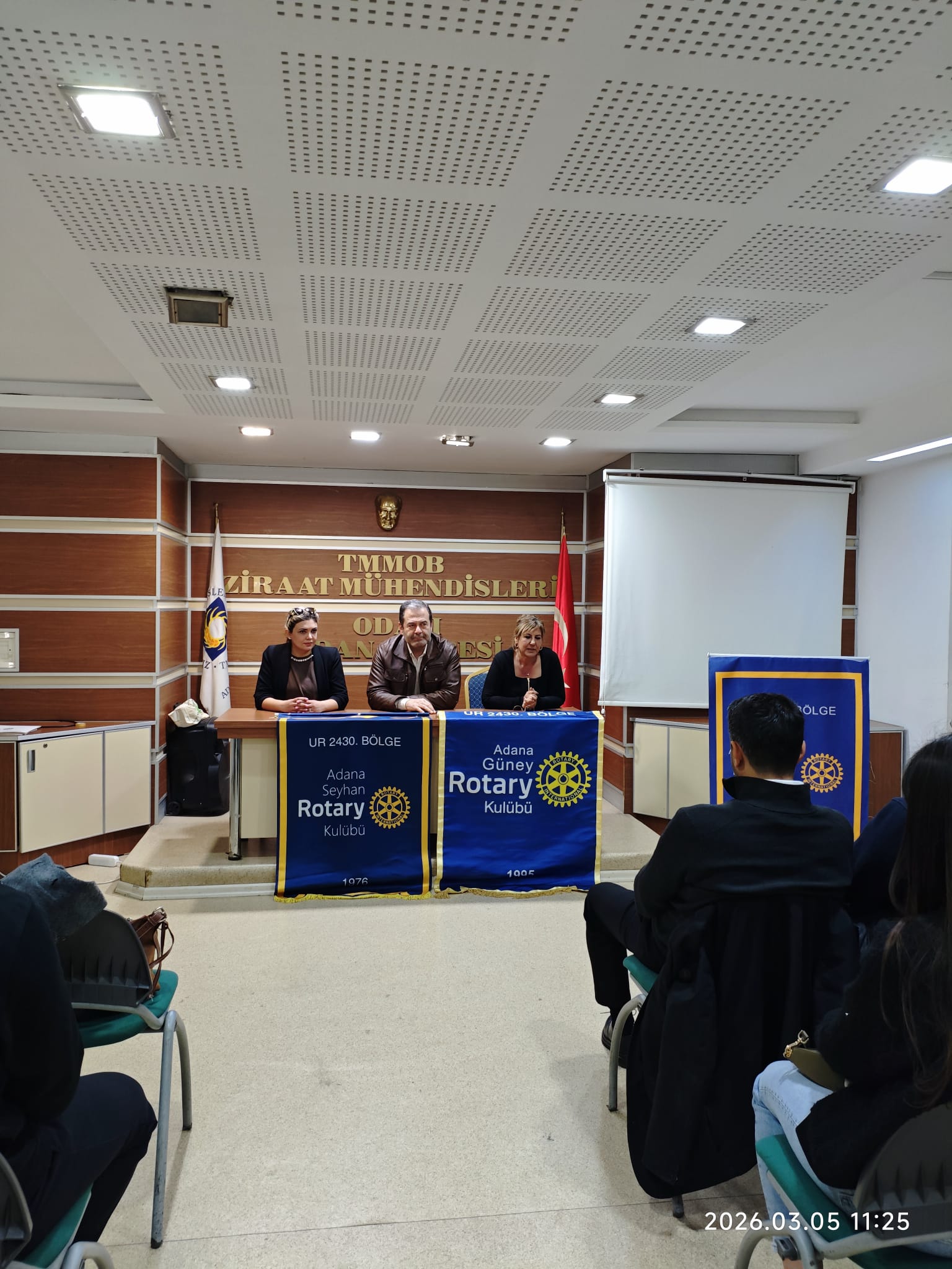 Adana Güney Rotary Kulübü olarak, Seyhan ve Koza Rotary Kulüpleri ile birlikte Adana Ziraat Mühendisleri Odası işbirliğiyle düzenlemiş olduğumuz ''Tarım Ürünlerinde Kullanılan İlaçların Zararları'' konulu seminerimizi , tarımla uğraşan kişiler için gerçekleştirdik. Konuşmacı konuğumuz Ural Canbolat tarafından Organik tarım, tarım zehirleri, sürdürülebilirlik konularında bilgiler paylaşıldı.