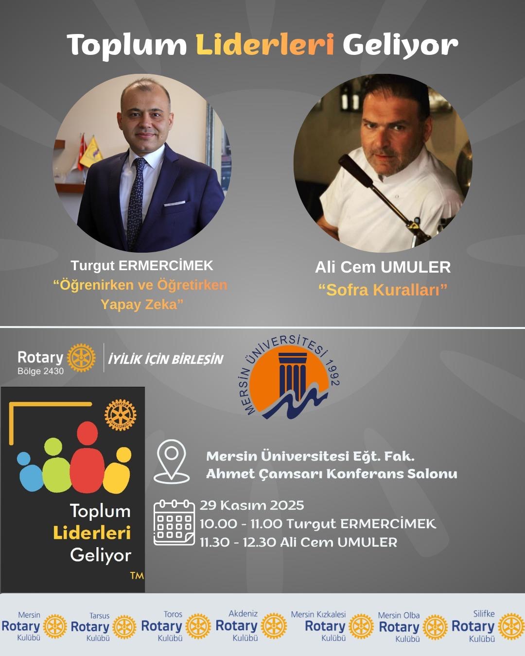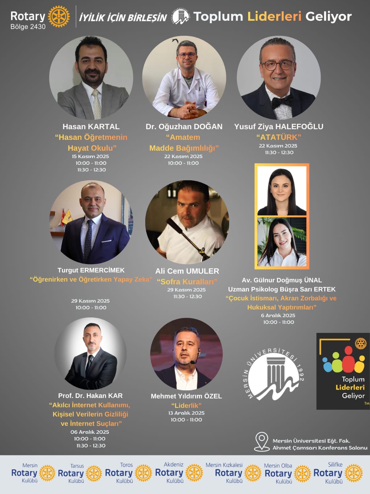 Mersin Üniversitesi Eğitim Fakültesinde Tüm Mersin Kulüplerinin beraber organize ettiği Toplum Liderleri Geliyor Projesi tamamlandı.