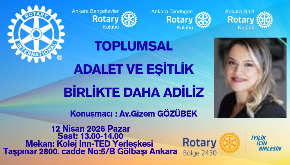12 Nisan 2026 tarihinde, TED Üniversitesi'nde burslu olarak eğitim gören öğrencilere yönelik olarak, Avukat ve Ankara Gazi Rotary Kulübü Başkanı Gizem Gözübek tarafından “Toplumsal Adalet ve Eşitlik” konulu bir seminer gerçekleştirilecektir.