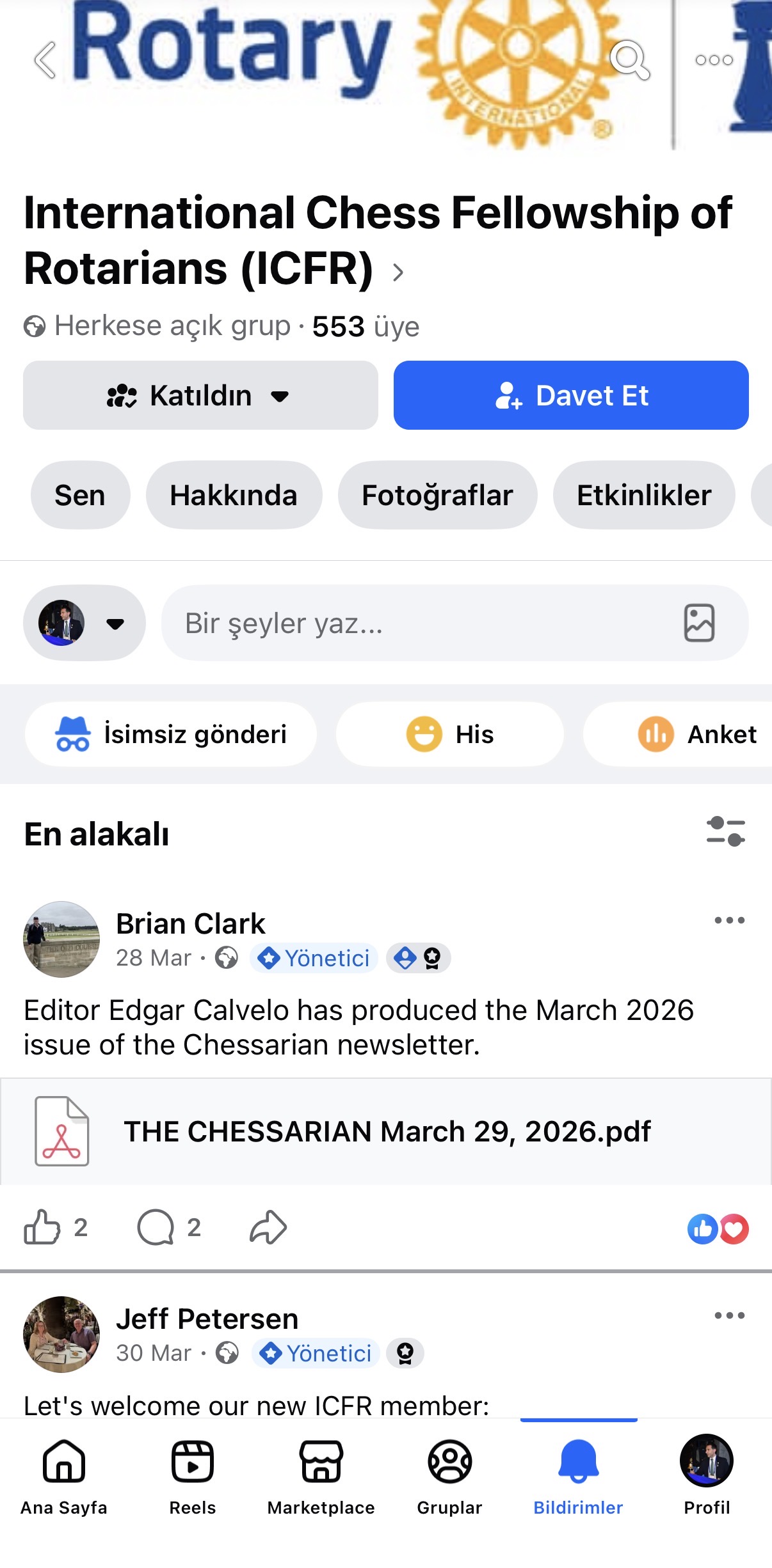 Adana Güney Rotary Kulübü olarak ; Fatoş Kunt, Tolga Taşkın, Gökhan Karakan, Buket Ünal Uğuz, Onur Doğan, Hale Erbaş International Chess Fellowship of Rotarians (ICFR) UR hobi grubuna katılım sağladık.