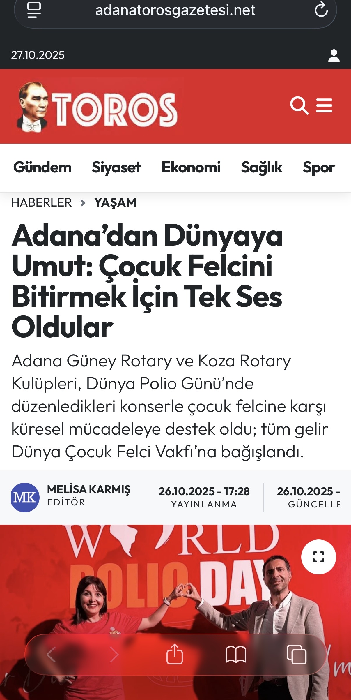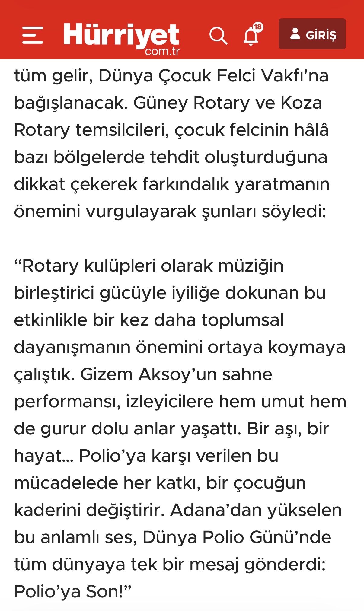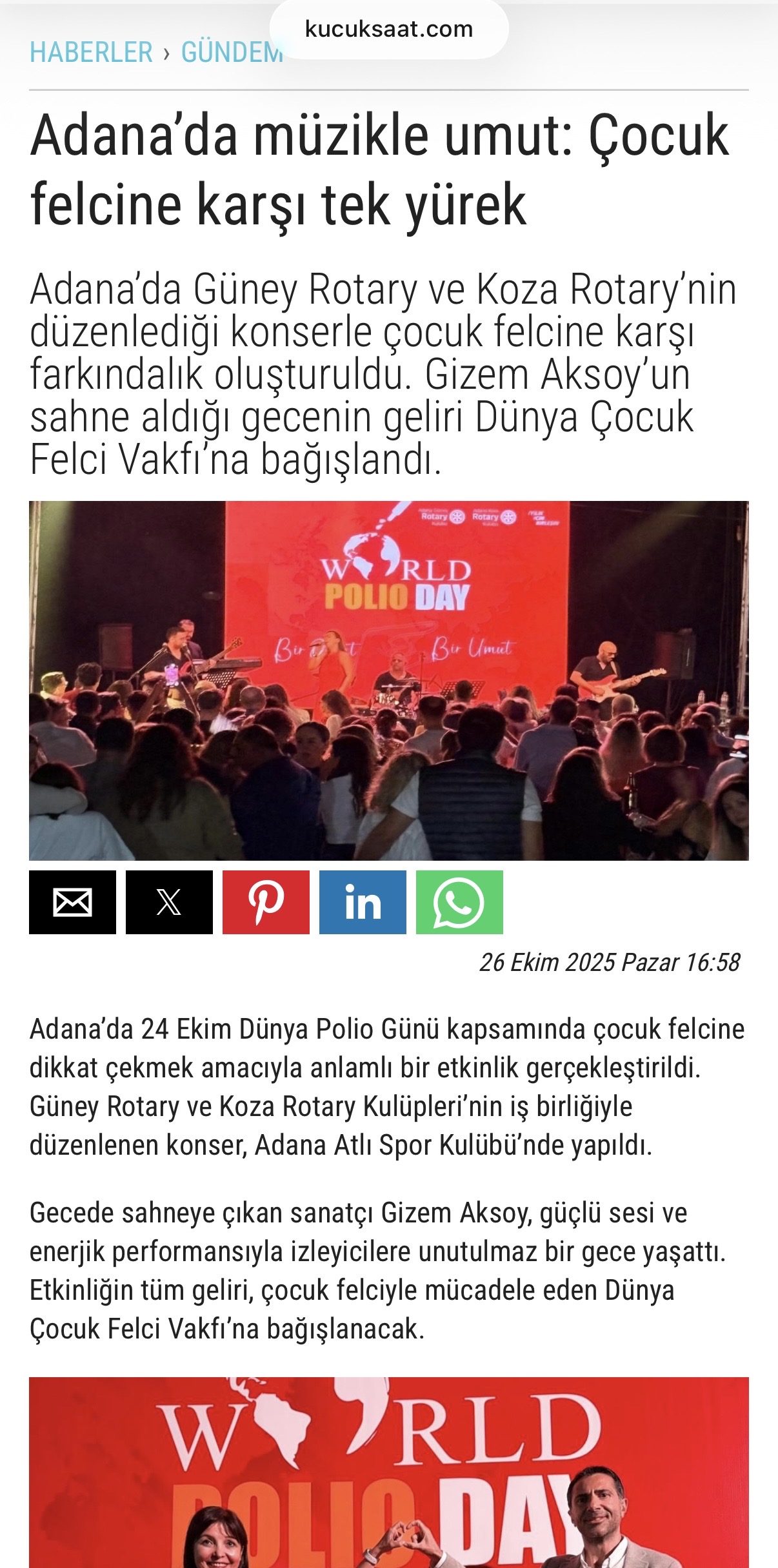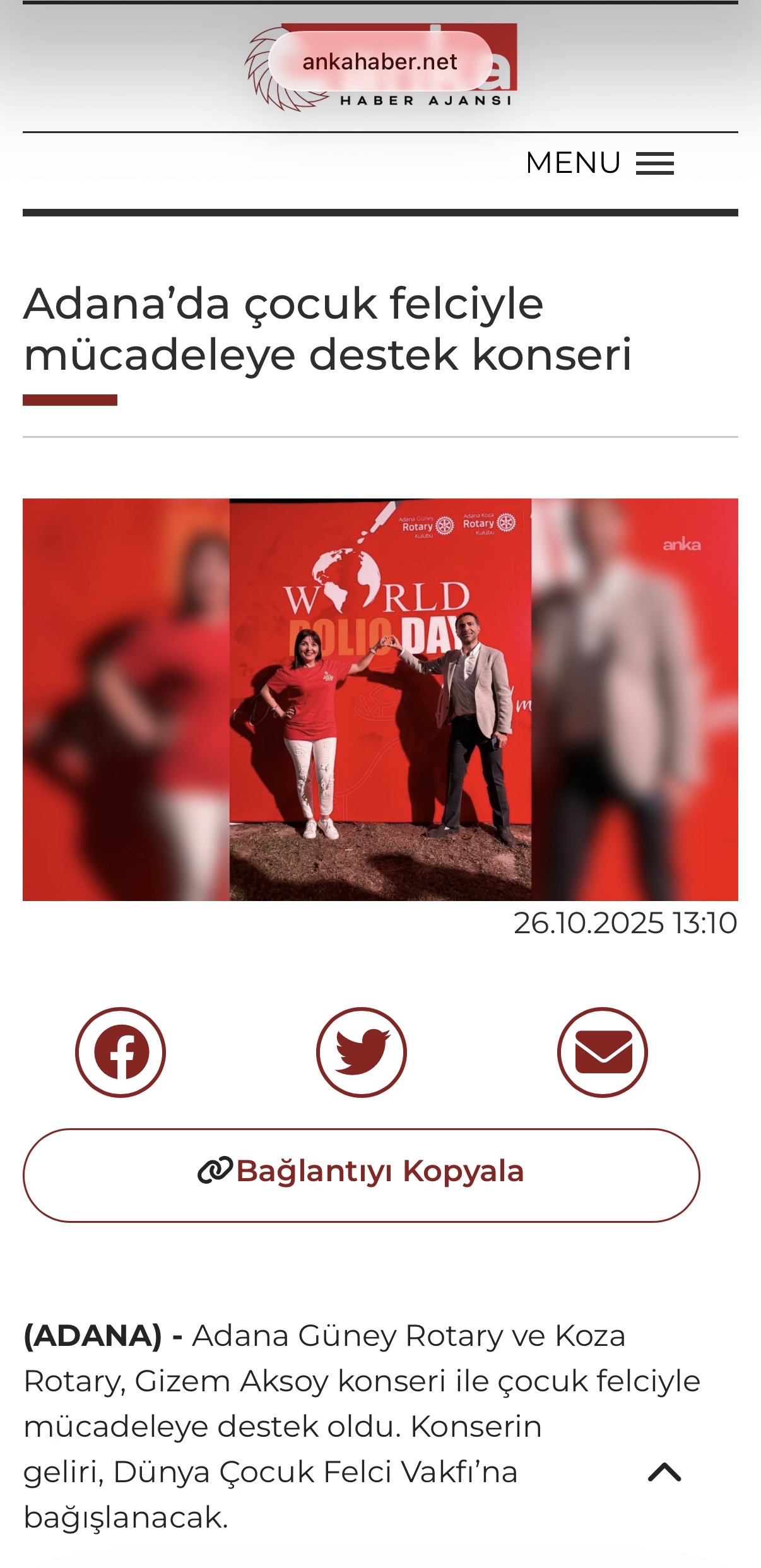 24 Ekim 2025 tarihinde gerçekleştirdiğimiz Bölge görevimiz Polio konser etkinliğimiz ve Kısa Dönem Discover Anatolia Yaz Kampı gazete ve Billboard haberleri