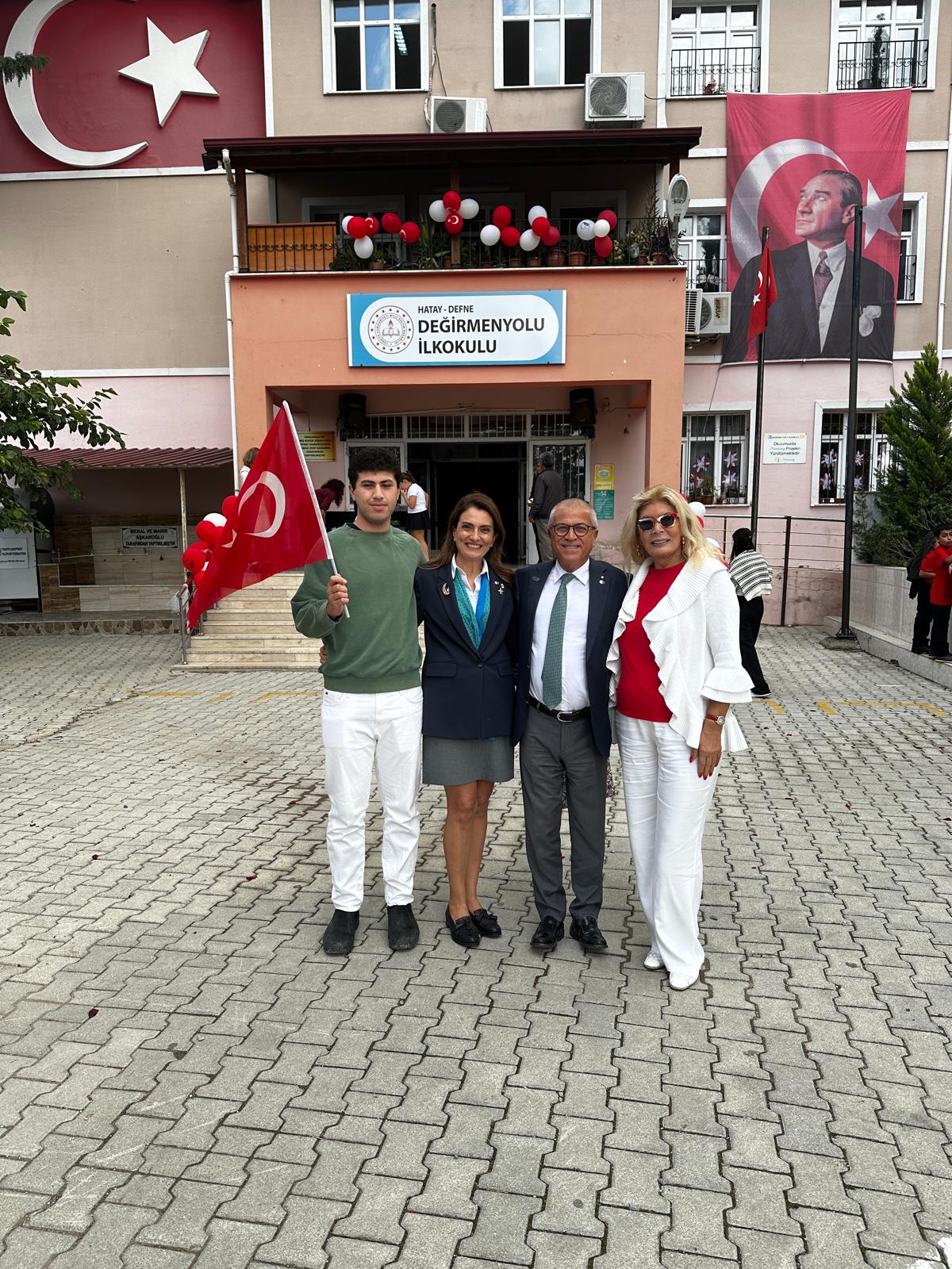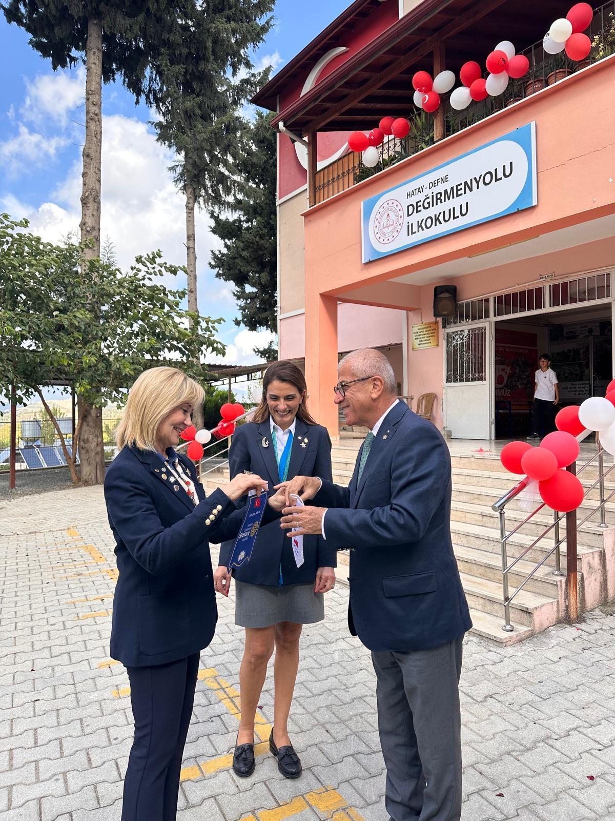 İstanbul Kız Kulesi Rotary Kulübü ile ortak olarak yürüttüğümüz projede afet bölgesi Hatay'ın Defne ilçesinde yer alan Değirmenyolu İlkokulu'nda öğrencilerle birlikte Cumhuriyet Bayramı'nı kutladık. Afetten etkilenmiş 244 öğrenciye ayakkabı yardımında bulunduk.