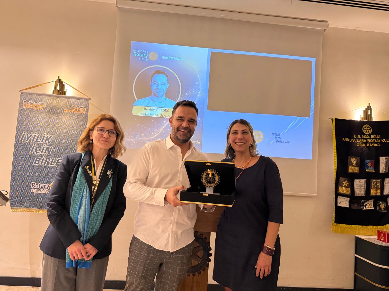 26 Ocak akşamı Lara Rotary Kulübü tarafından düzenlenen meslek hizmetleri ödül törenininde, yaptıkları başarılı çalışmalar ile hem meslektaşlarına hem de topluma örnek olan, özellikle genç meslek sahiplerini yüreklendirerek onların da yararlı çalışmaları için önder olan; Dijital içerik üreticisi İbrahim Gelgeç’e Yeni Ortaya Çıkan Mesleklerde Teşvik Ödülü takdim edilmiştir.