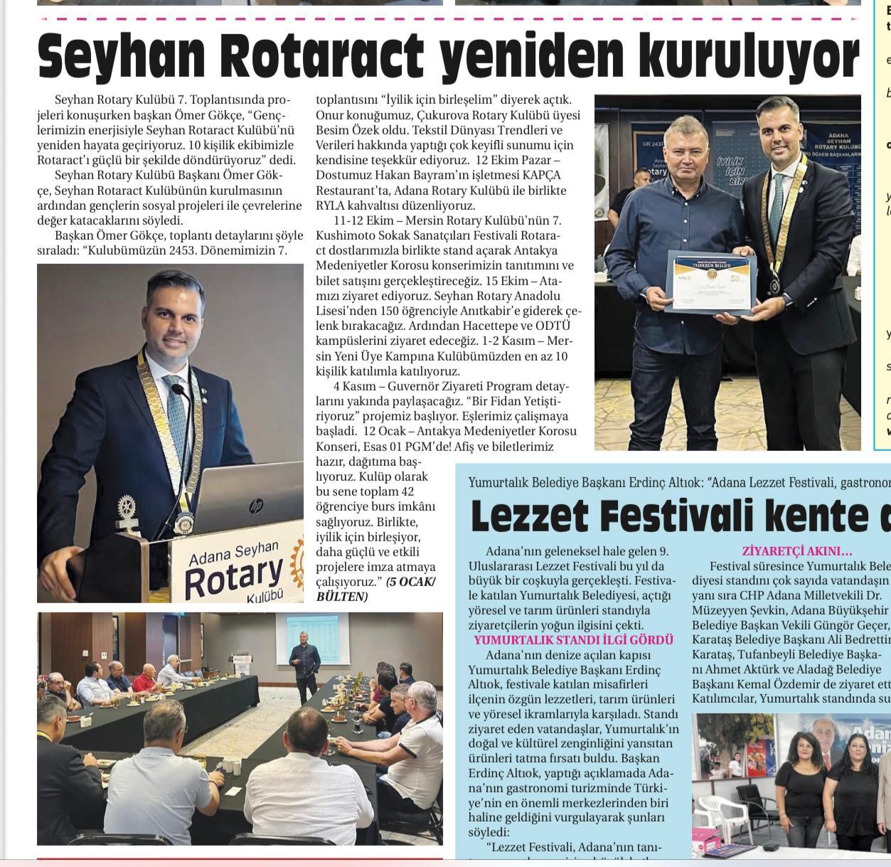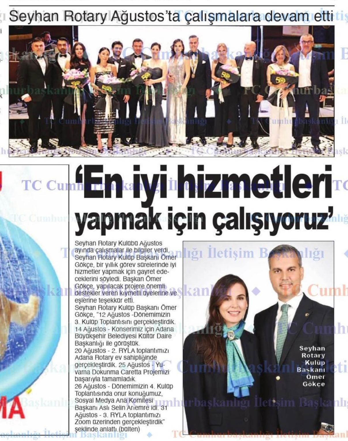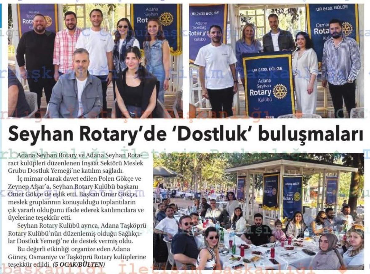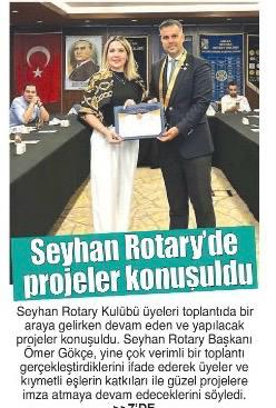 Adana Seyhan Rotary Kulübünün yaptığı projeler 38 haberde yayınlanmıştır.