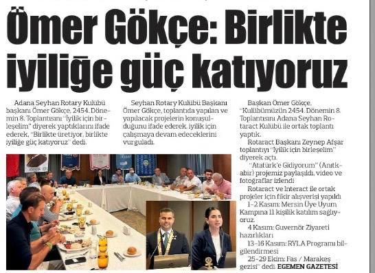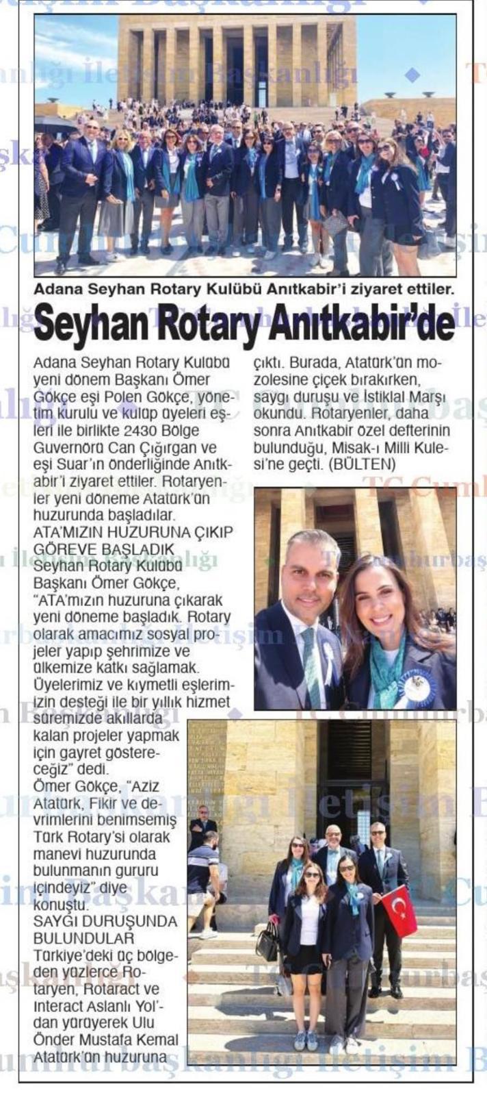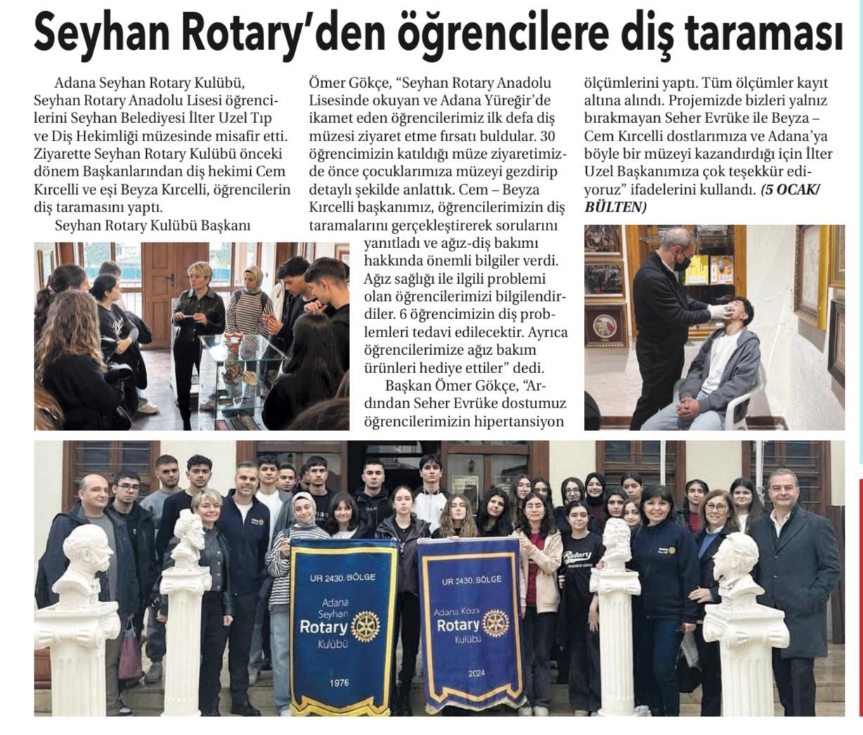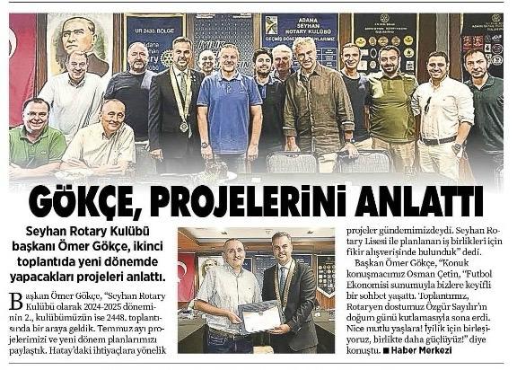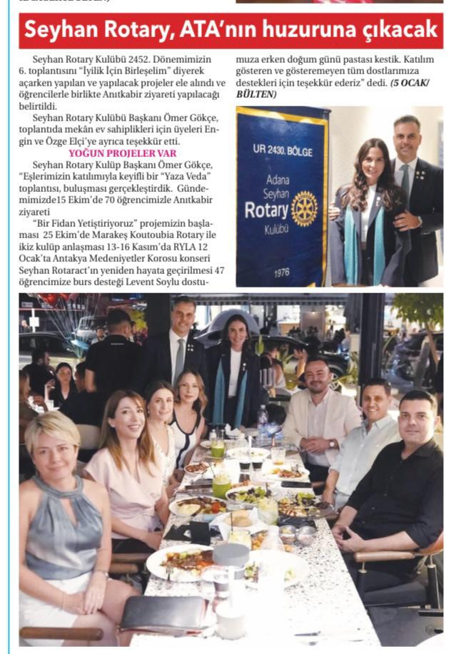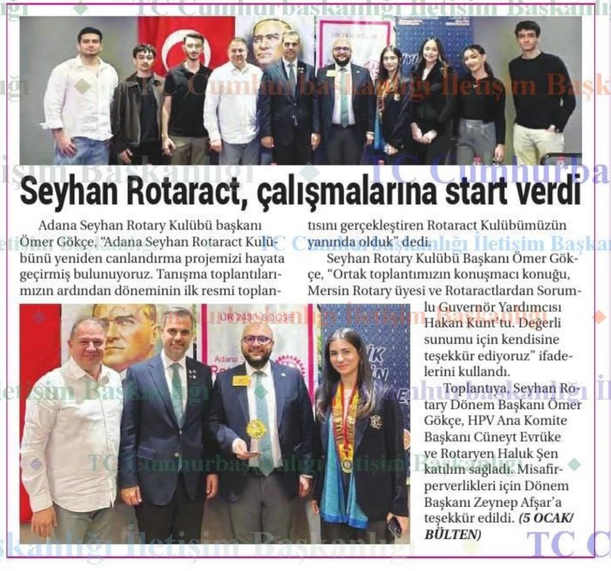 Adana Seyhan Rotary Kulübünün yaptığı projeler 38 haberde yayınlanmıştır.