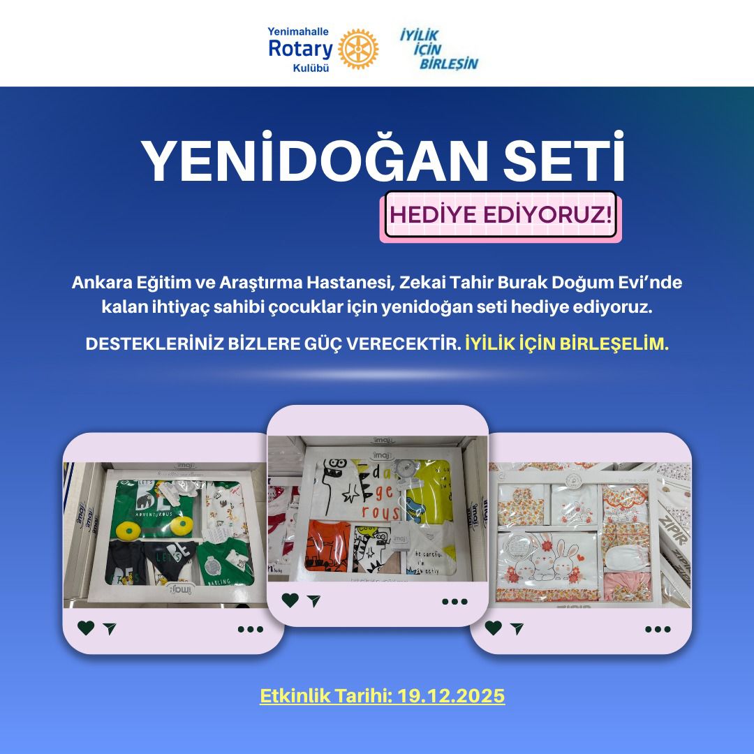 Yenimahalle Rotary Kulübü olarak Ankara Eğitim ve Araştırma Hastanesi, Zekai Tahir Burak Doğum Evi Yenidoğan Ünitesi'ne ihtiyaç sahibi ailelere ulaştırılması amacıyla yenidoğan setlerimizi hastane yetkililerine teslim ettik.