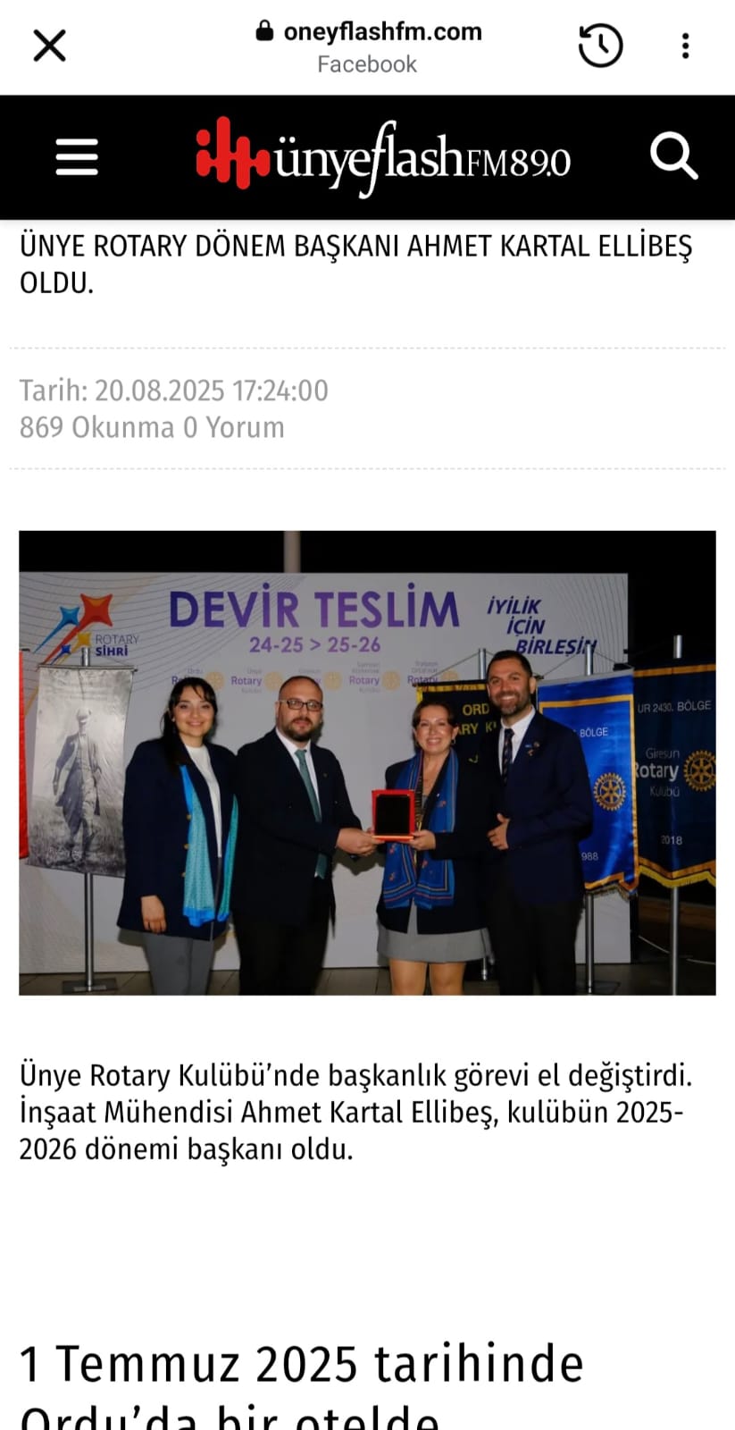 - Proje Adı: Yerel Medyada Ünye Rotary Kulübü