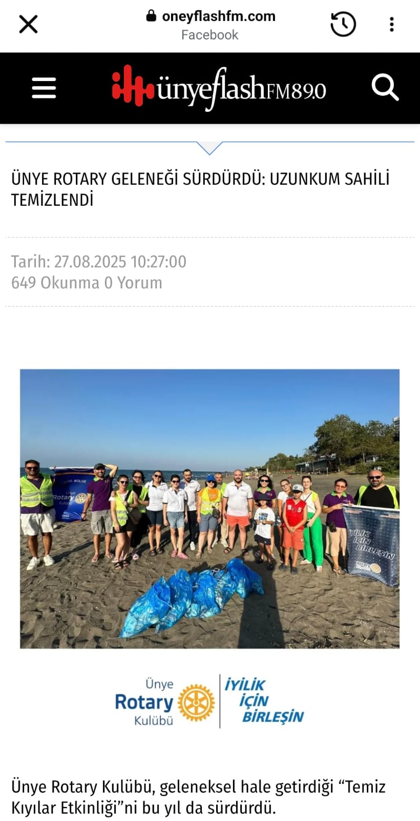 Yerel Medyada Ünye Rotary Kulübü