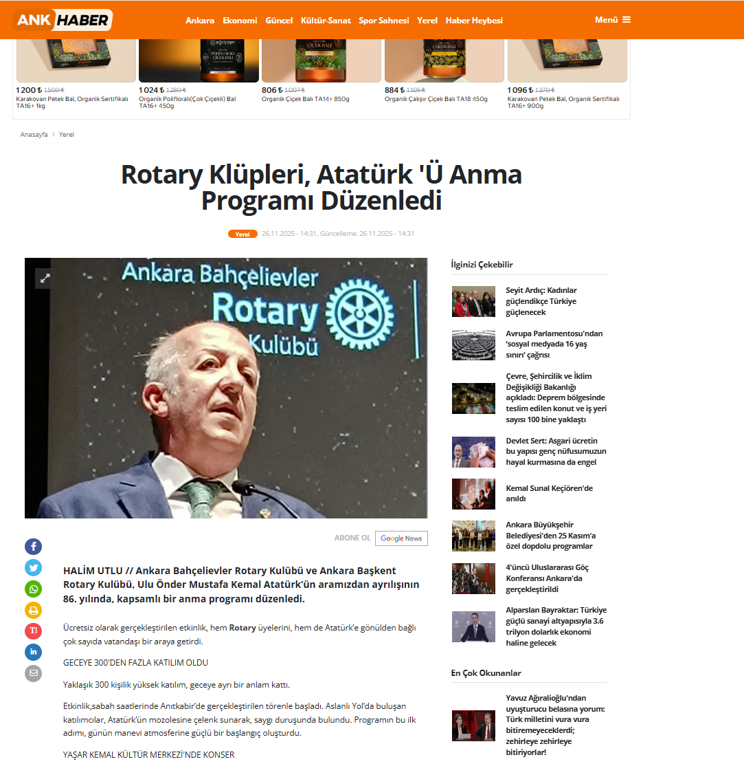 Düzenlediğimiz 10 Kasım Atatürk'ü ANma Etkinliğimiz Ankhaber'de yayınlanmıştır. Aşağıdaki linkten ilgili habere ulaşılabilir: https://www.ankhaber.com/haber-rotary-klupleri-ataturk-u-anma-programi-duzenledi-30172.html