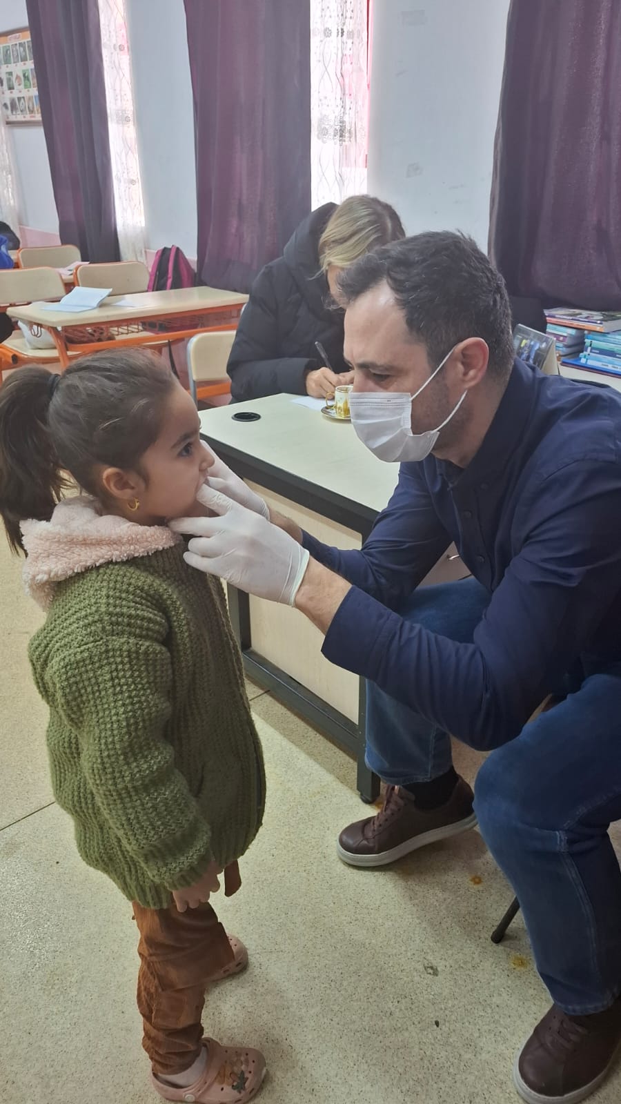 DİŞ SAĞLIĞI İLE İLGİLİ KUYUMCULAR İLKOKULUNA DNT.ARİF BARAN İLE BİRLİKTE 35 İLKOKUL ÖĞRENCİSİNE DİŞ TARAMASI YAPILMIŞTIR.