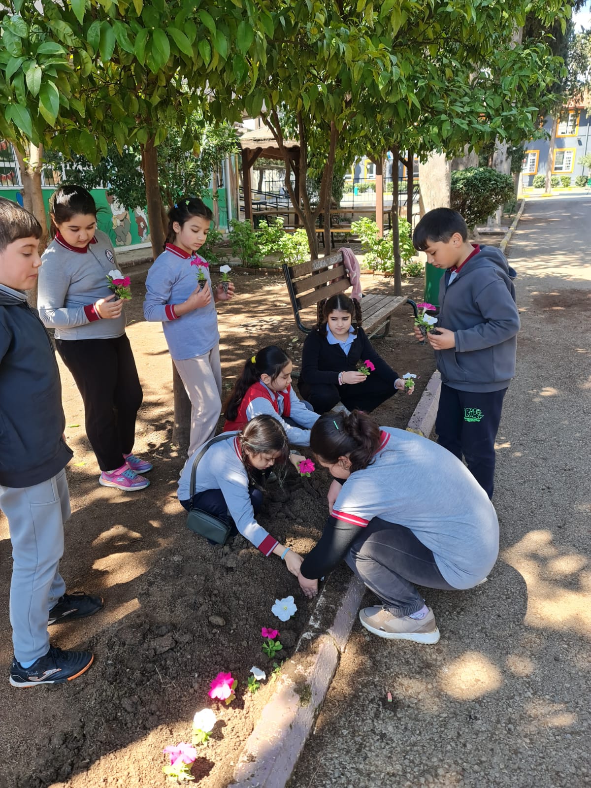 YukarıKaraman Perge Rotary ilköğretim Okulunda 2. ve 4. Sınıf öğrencileri ile okul bahçelerine mevsimlik çiçek dikimi yapıldı. . Önce çocuklara peyzaj mimarı olan kulüp başkanımız tarafından tohum, bitkiler ve ağaçlarla ilgili bilgilendirme yapıldı. Daha sonra dikim aşamaları anlatılarak çoculara uygulamalı gösterildi ve tüm öğrenciler kendi mevsimlik çiçeklerini bahçelerine diktiler.