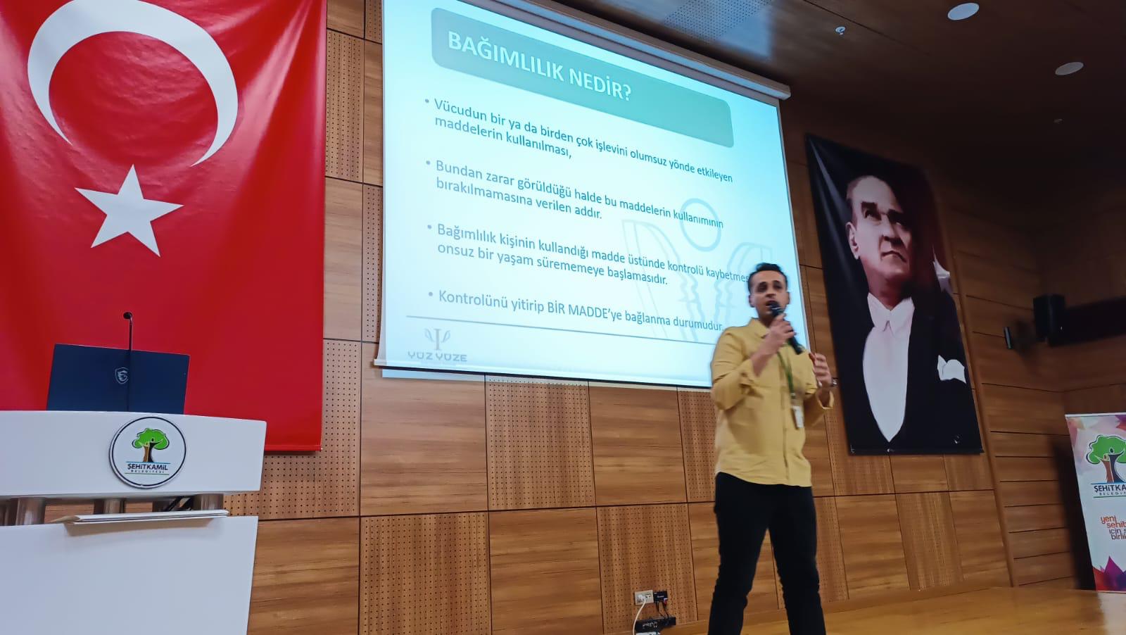 01.12.2025 tarihinde Gaziantep Şehitkamil Belediyesinin de katkılarıyla yapılan ev-ka projesi kapsamında Klinik Psikolog Mehmet Hasgül tarafından 150 kadına madde bağımlılığı, önlenmesi ve tedavisi konularında eğitim verilmiştir.