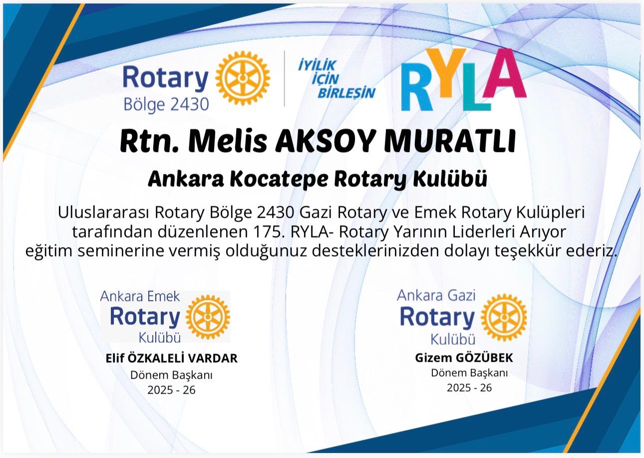 Ankara emek ve gazi rotary kulüplerinin dzüenlemiş olduğu rylaya 2 öğrenci gönderimi sağlanmıştır gönderilen öğrenciler kulüp bursiyerlerimizdir.