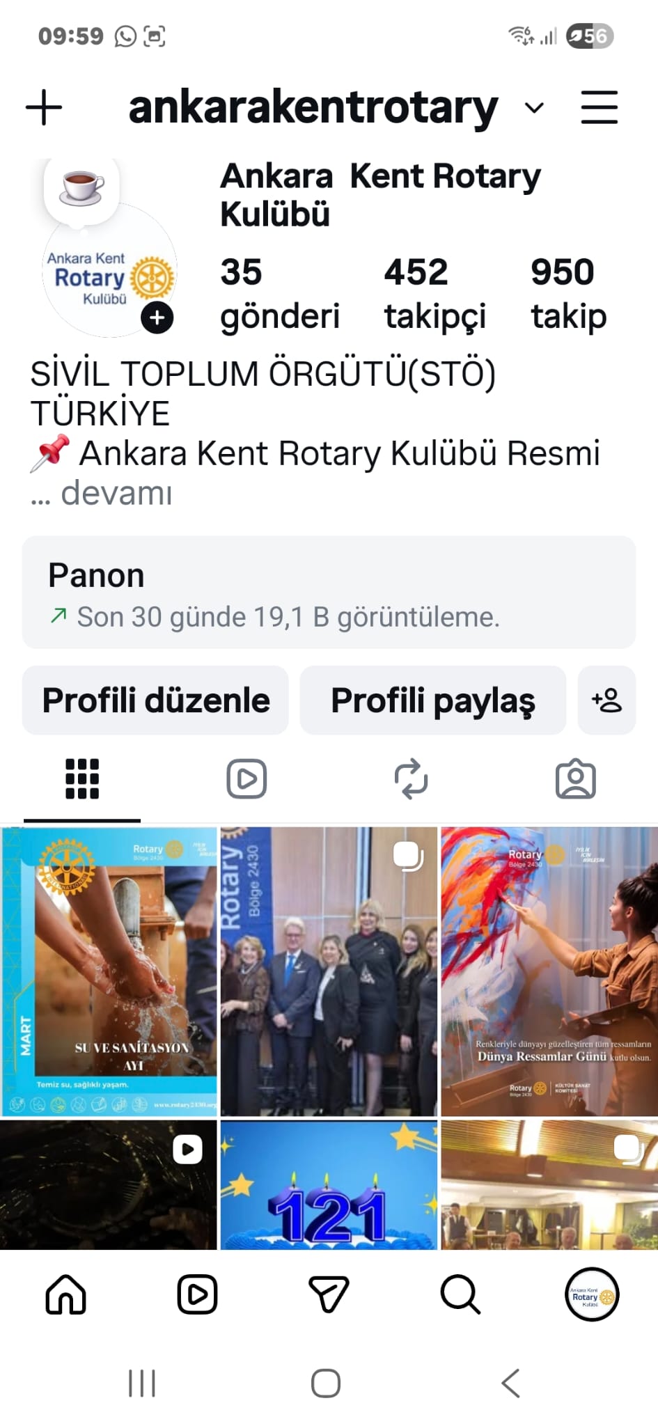 10 Ocak 2026 tarihinde kurulan Ankara Kent Rotary Kulübü instagram sayfası 452 kişiye ulaşmıştır.