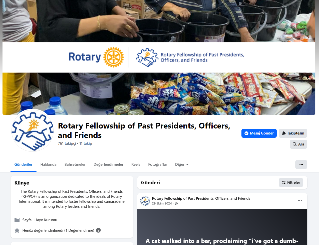 uluslarası hobi komitesi gruplarından Rotary Fellowship of Past Presidents,Officers, and Friends grubuna Ece Akan,Suat Torun, Elif Özkaleli Vardar, Suat Genç,Canan Yakın, Kamer Koldaş Üye olmuşlardır.