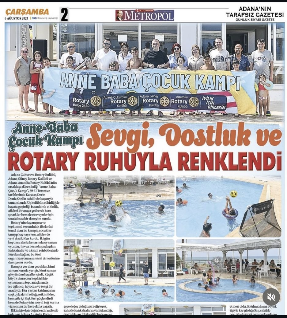 1-Ağustos ayında gerçekleştirdiğimiz anne baba çocuk kampı yerel medyada Metropol gazetesinde haber olarak yayımlandı