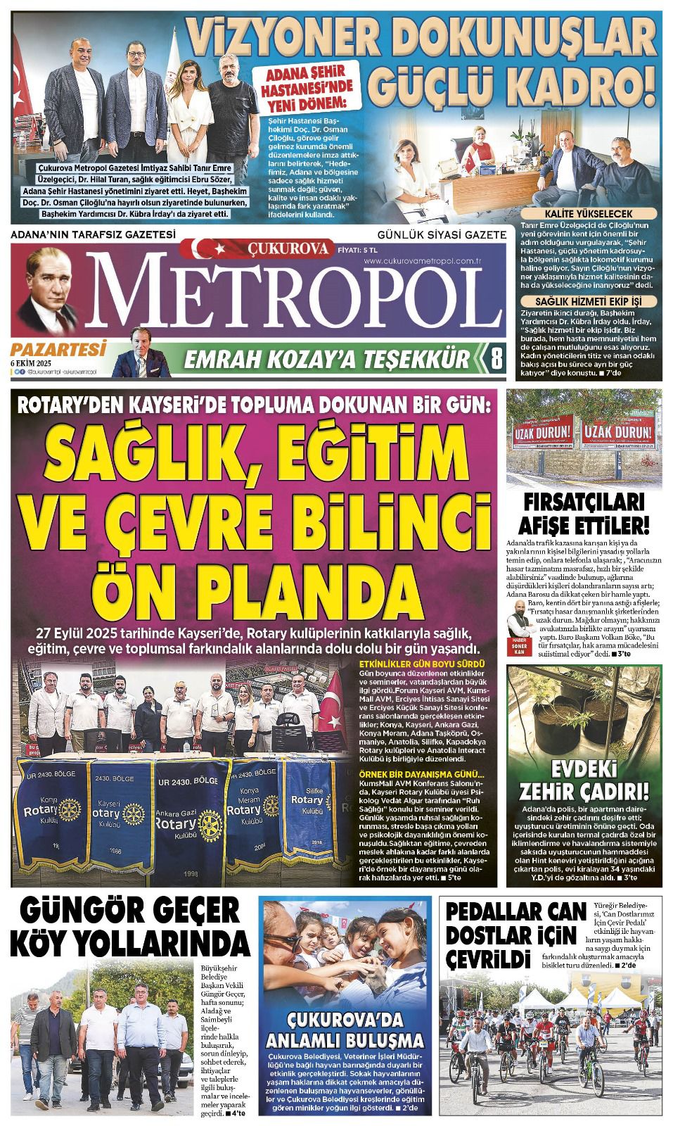 27 Eylül 2025 tarihinde Kayseri’de Hipertansiyon farkındalığı, ruh sağlığı, meslek liselerinin önemi, meslek etiği ve itibarı, atma dönüştür, sepsis farkındalığı, zehirlenmeden bahsedelim konularında gerçekleştirdiğimiz projelerimiz Metropol Medya’da yayınlanmıştır.
